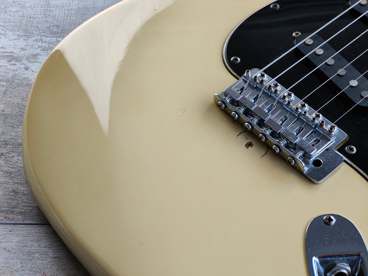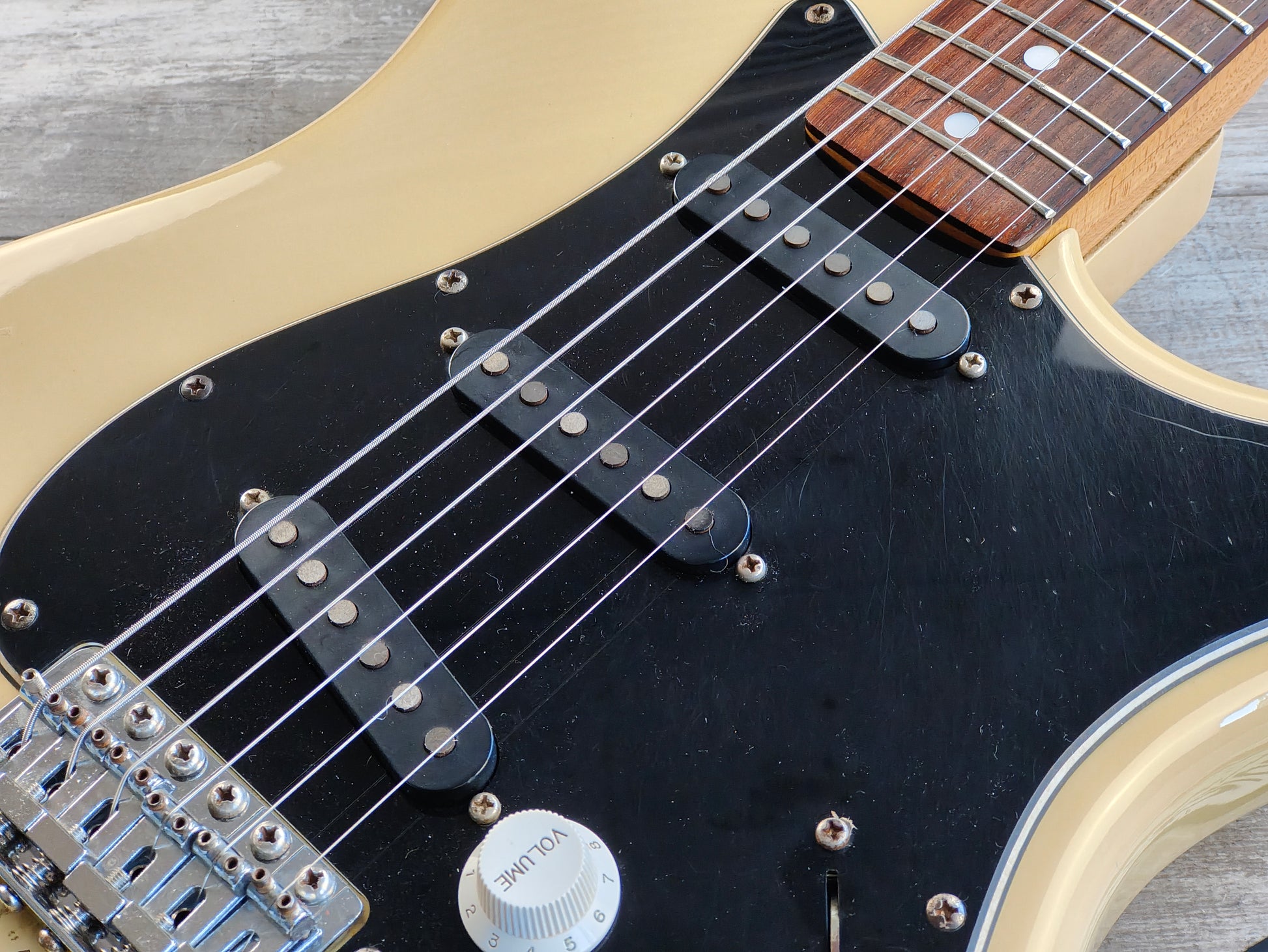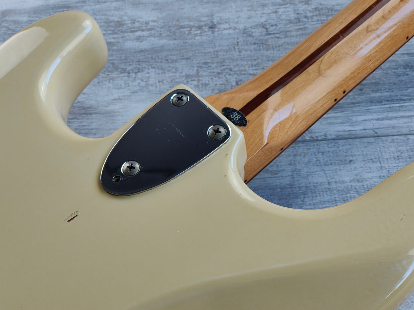 Made in Japan in 1983, the SS-38 Silver Star was Tokai’s version of the CBS era Fender Stratocaster including a large headstock with a bullet truss and micro-tilt adjustor on a three-bolt neck plate.