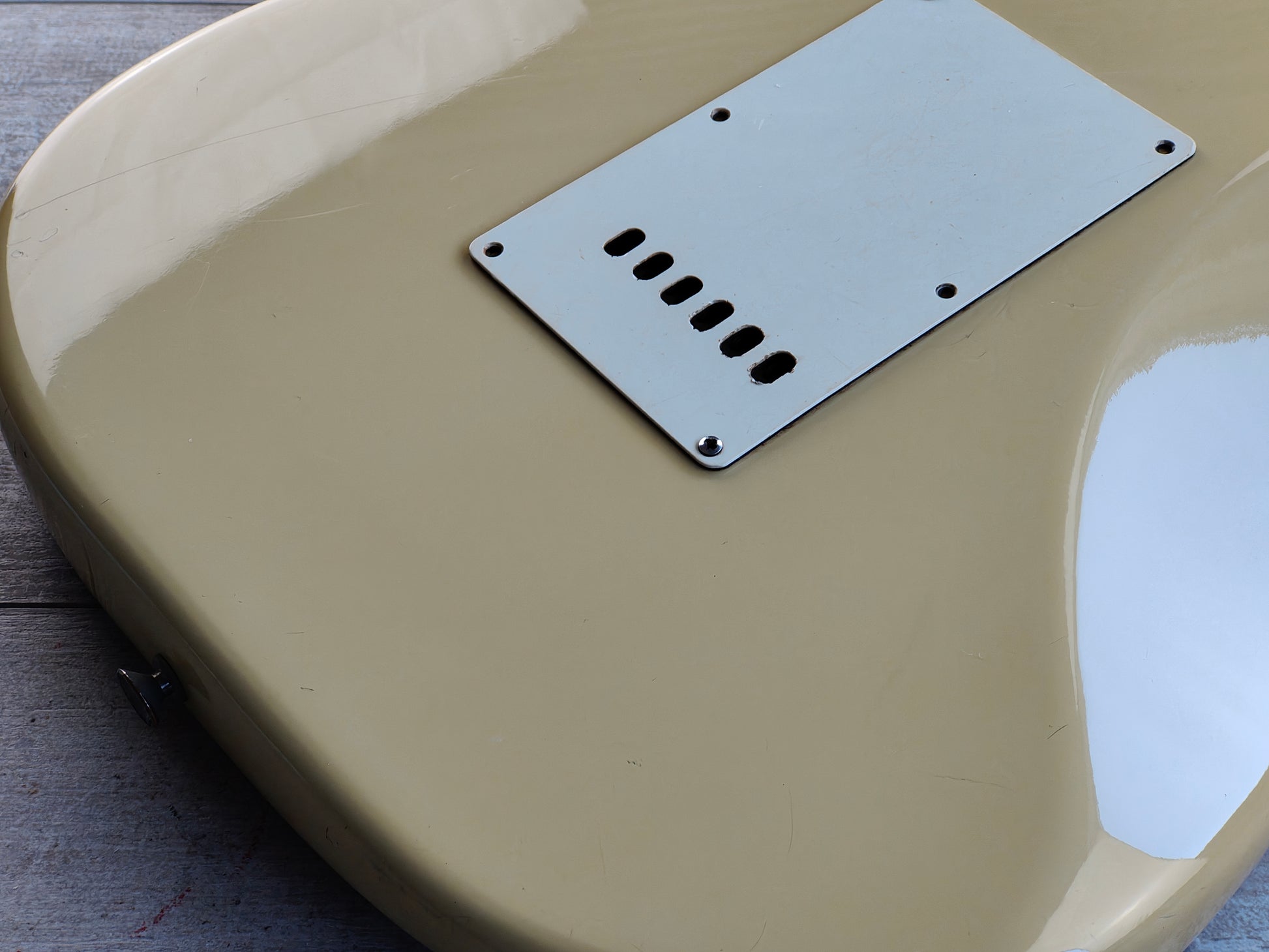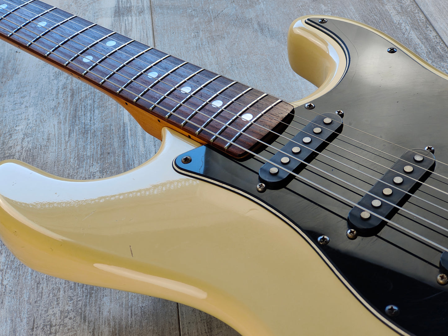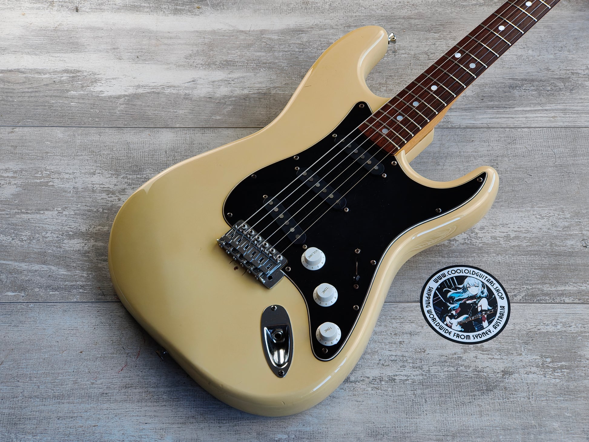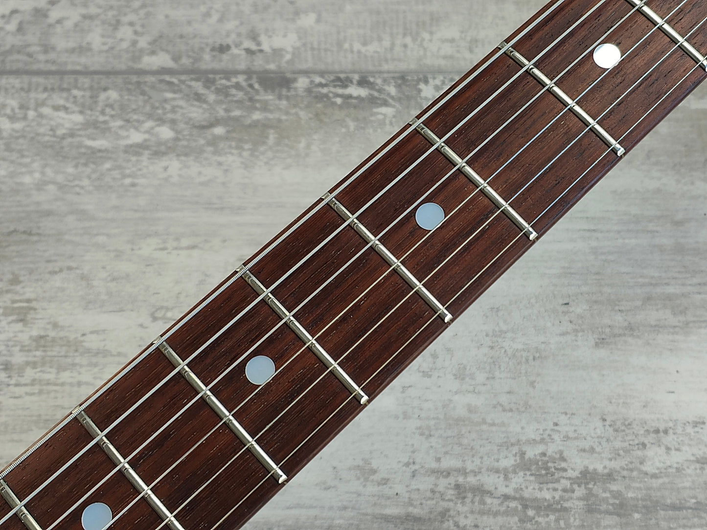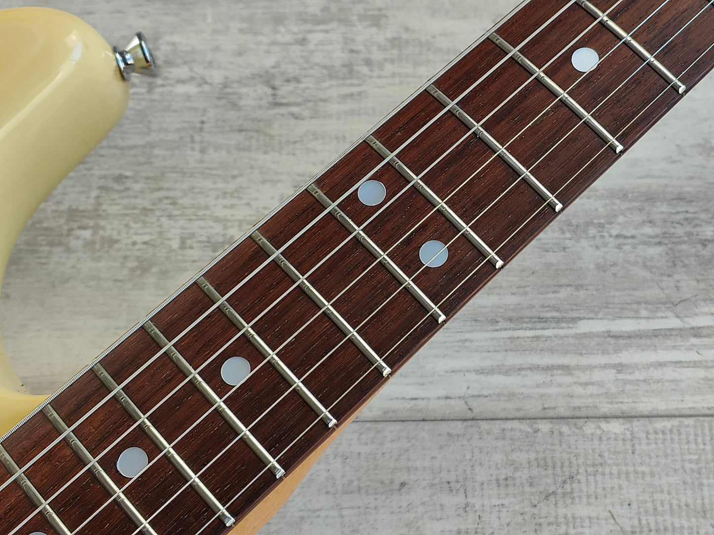 Alder body with an aged Olympic White finish, maple neck with a comfortable rounded C profile and 21 fret rosewood fingerboard (39mm nut width). Loaded with the original 5-way switch, Japanese pots and Tokai H stamped alnico single coil pickups that suit the guitar perfectly. Weighs 3.5kg’s.
