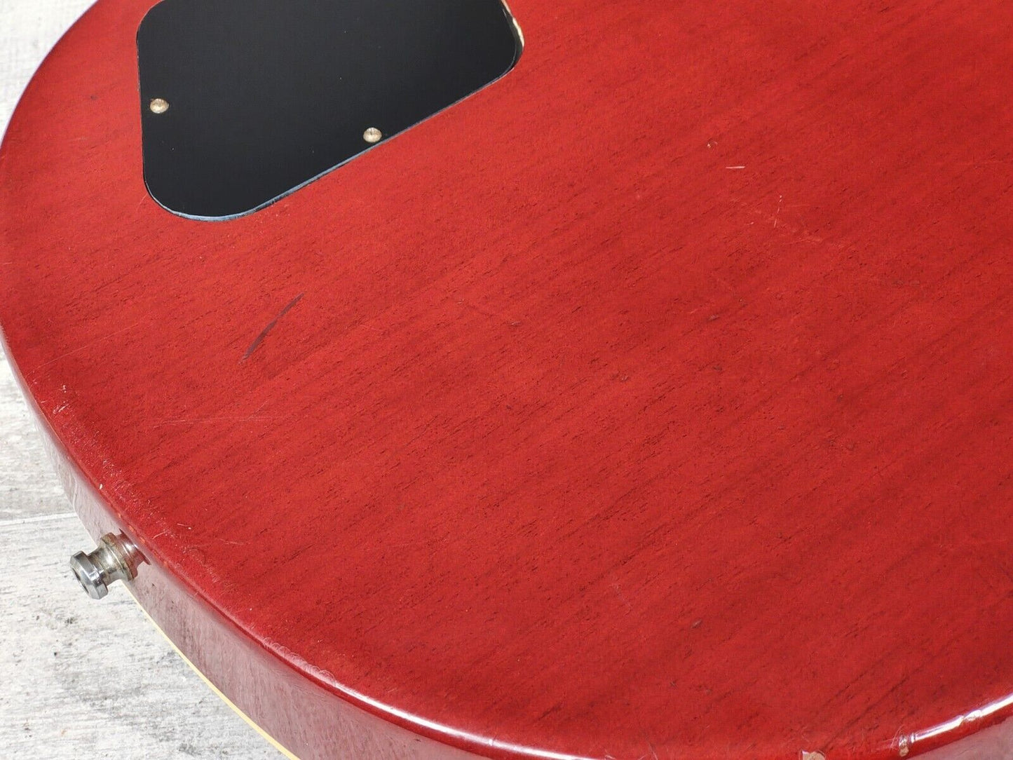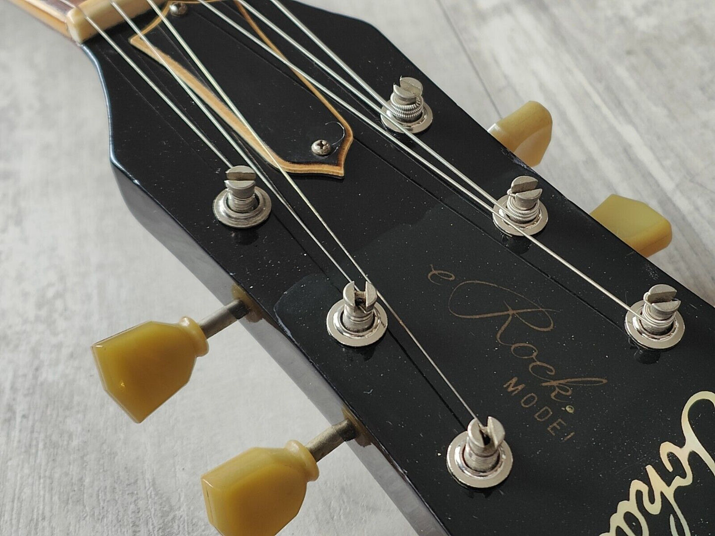 The Tokai TLS-50 was made in Japan in 1983 and was the base model of the Tokai Love Rock lineup. Mahogany body with a solid maple top wearing a poly brown sunburst finish, medium profile mahogany neck with a 22 fret rosewood fingerboard, it weighs just over 4kg's. Loaded with a pair of PAF '57 humbuckers and the original PCB mount pots/wiring.