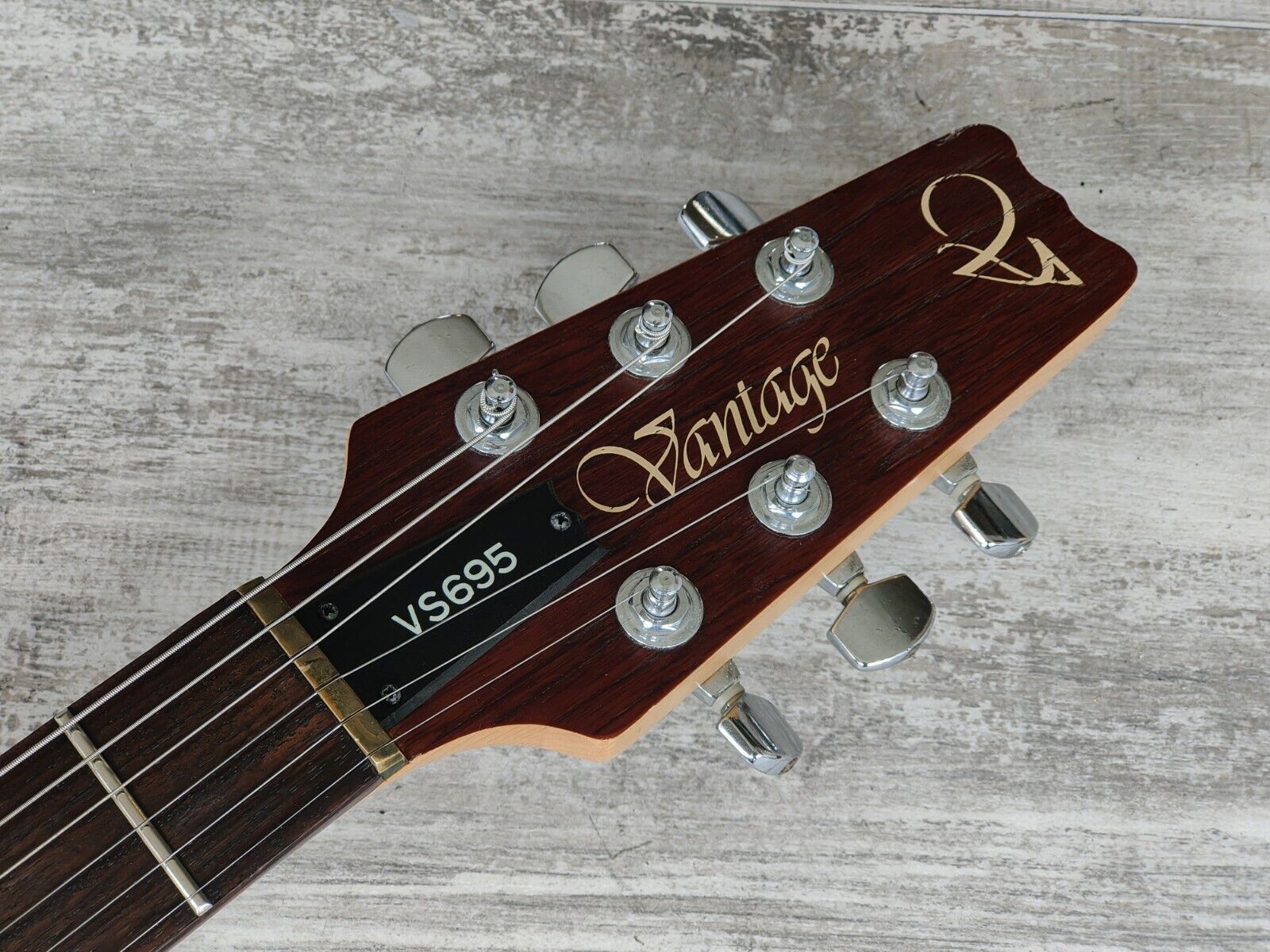 The Vantage VS695 Series of solid body guitars and basses was created to provide the musician with wide-range tonal variations in an extremely playable and solidly constructed instrument. The natural sound of these instruments is enhanced by hot, custom-engineered Vantage humbucking pickups.