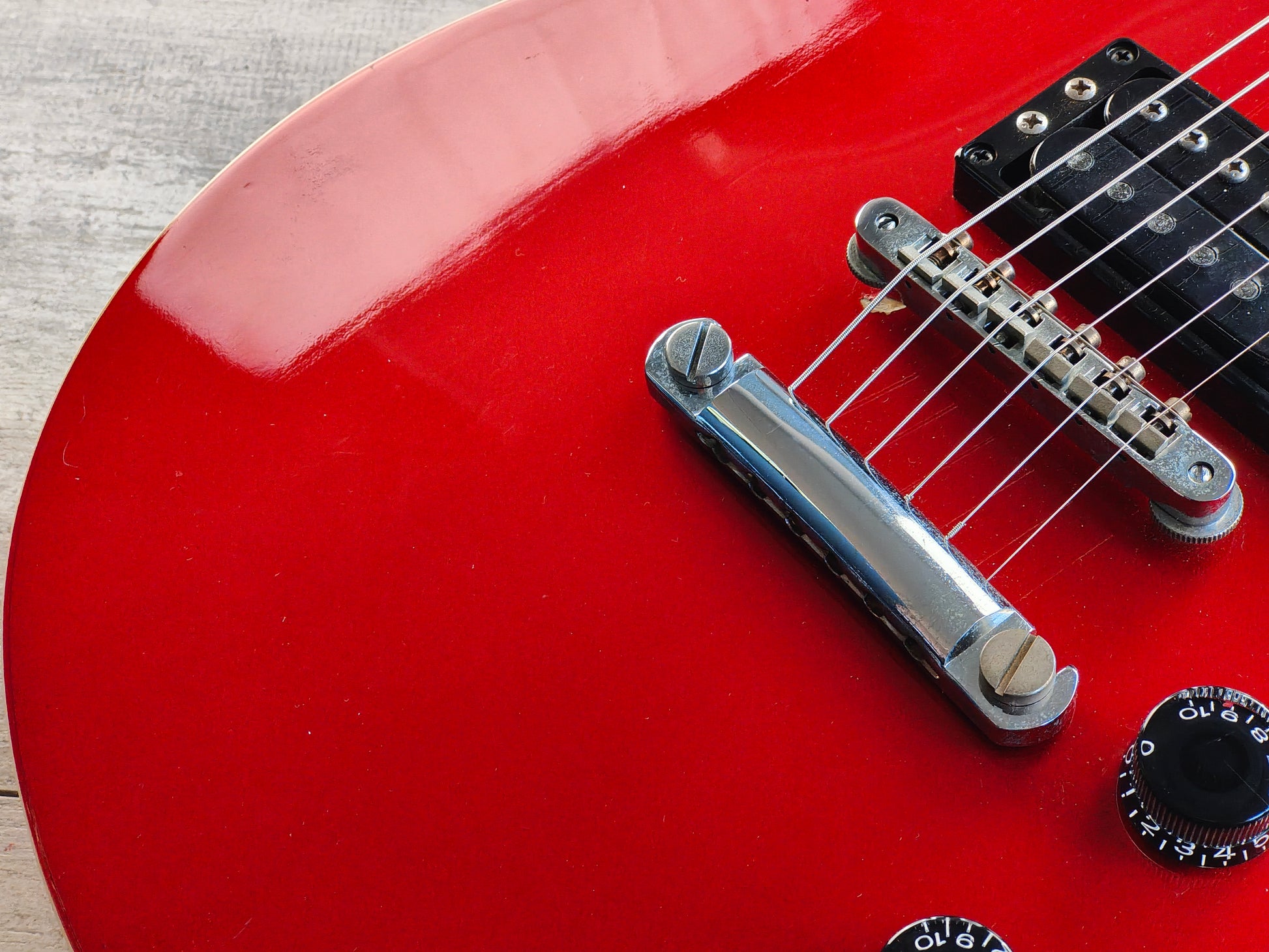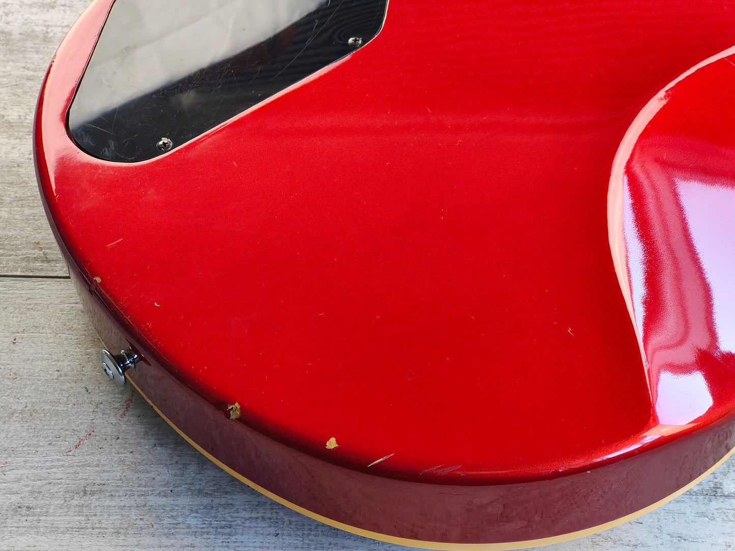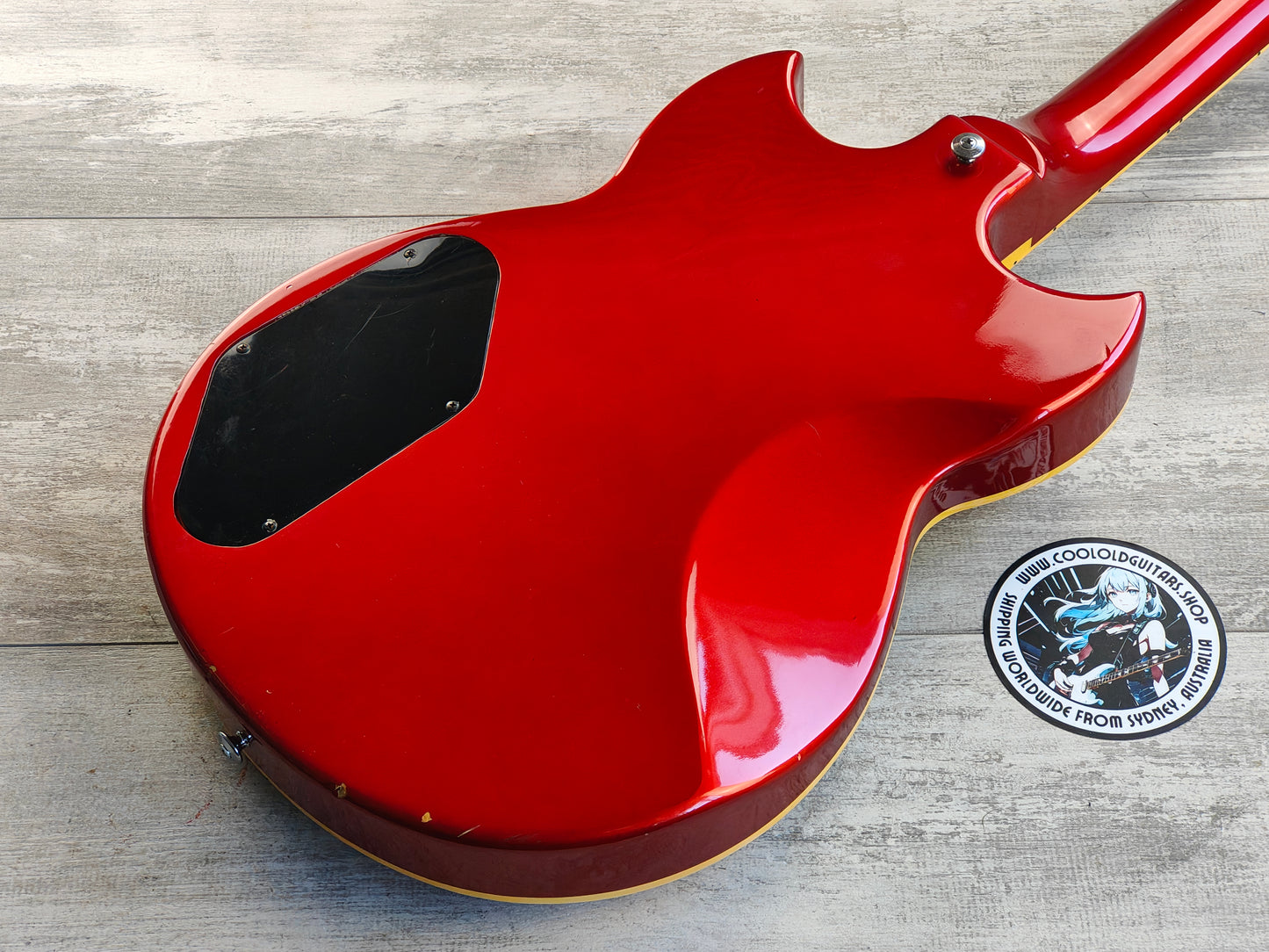 Considered by many as an upgrade to the standard Les Paul design, the Yamaha SG series are some of the fullest sounding guitars you'll ever play. This SG-510 was released for the 1983 catalog. Weighing 3.5kg's, it's built with an agathis body, slim 60's mahogany neck and a rosewood fretboard (628mm scale length, 43mm nut width). With a very bright "Candy Tone Red" finish (as per the catalog), it appears all original.