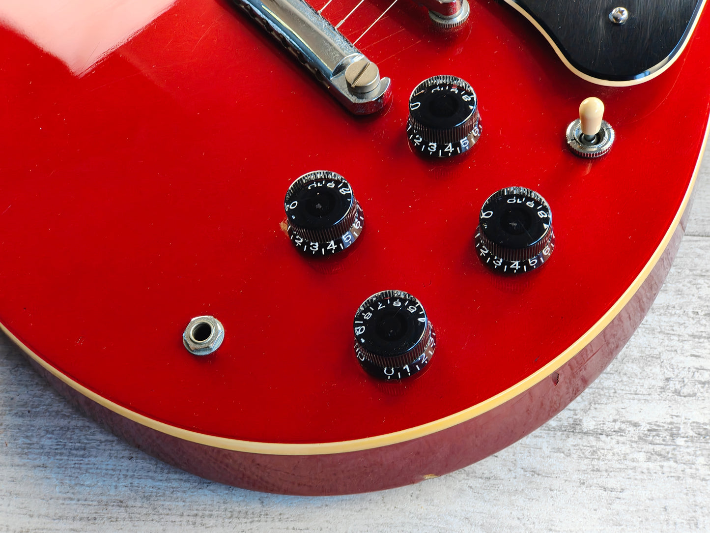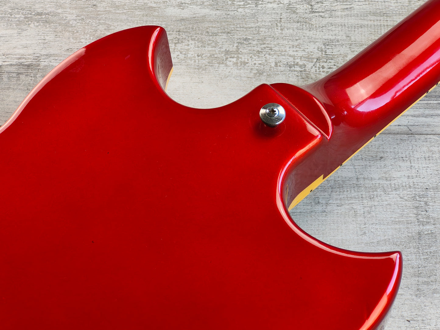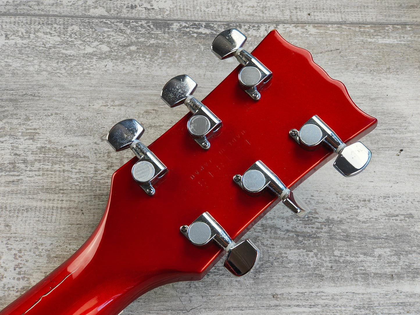Considered by many as an upgrade to the standard Les Paul design, the Yamaha SG series are some of the fullest sounding guitars you'll ever play. This SG-510 was released for the 1983 catalog. Weighing 3.5kg's, it's built with an agathis body, slim 60's mahogany neck and a rosewood fretboard (628mm scale length, 43mm nut width). With a very bright "Candy Tone Red" finish (as per the catalog), it appears all original.
