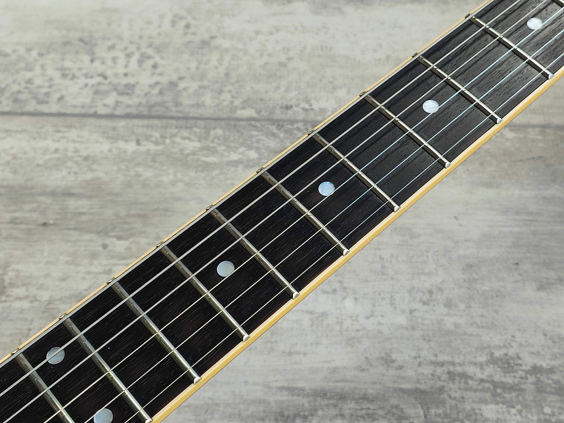 Good used condition as pictured for an almost 40 year old guitar, has some bumps and dings as pictured along with a small headstock repair as pictured, drop-filled and smoothed so it's not jagged. With a refinish in the area you'd never know it was repaired, it only stands out as there's a sparkle silver undercoat that shines through. Given a full setup and service prior to listing including a fretboard oil, fret polish, truss adjustment and restring, frets have plenty of life.
