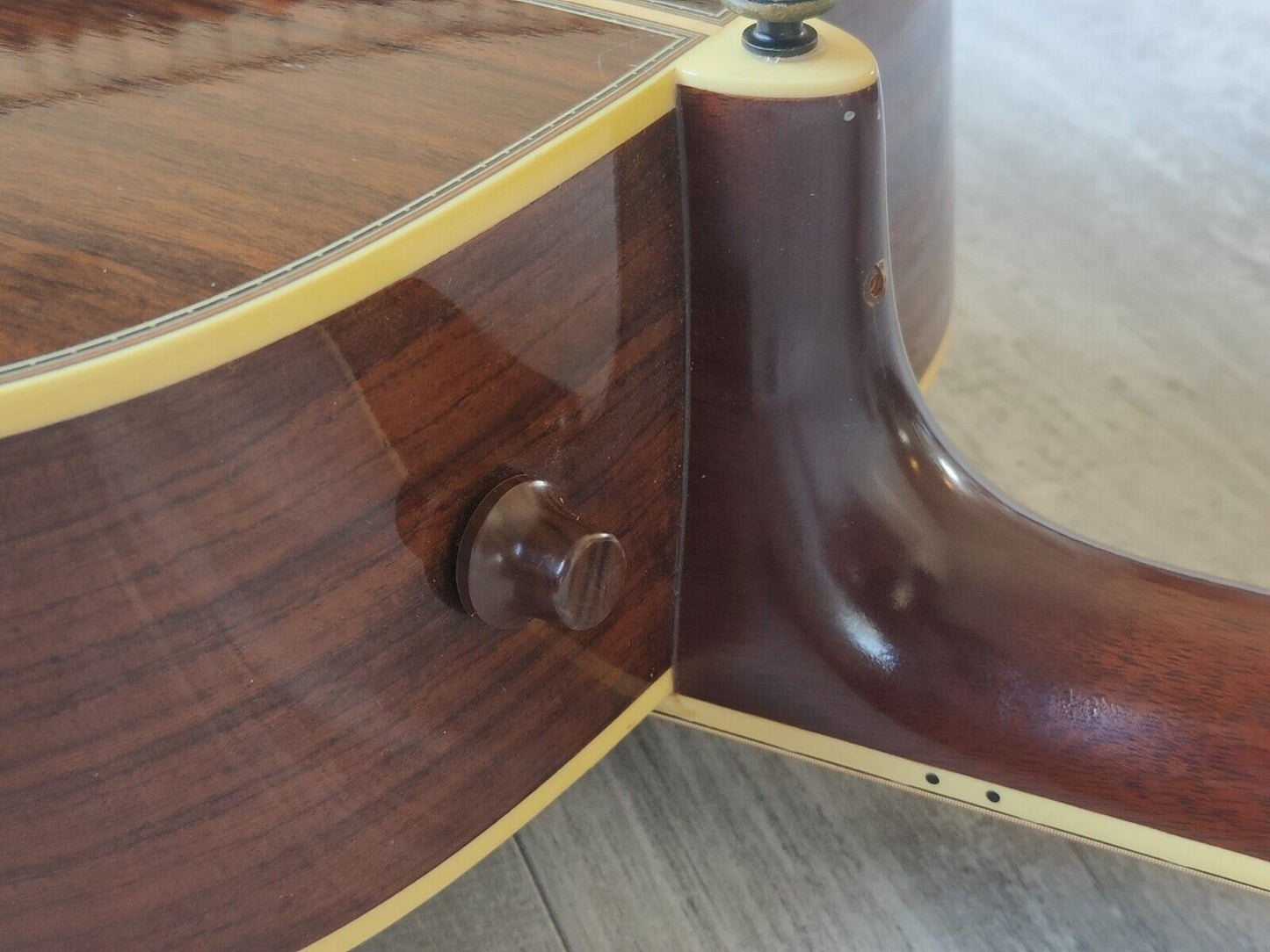 Loaded with a pickup/preamp system with volume, mix, bass and treble controls. Good vintage condition as pictured, received a full basic setup prior to listing including a fret polish and truss adjustment. Frets have some pitting and the finish shows signs of play wear.