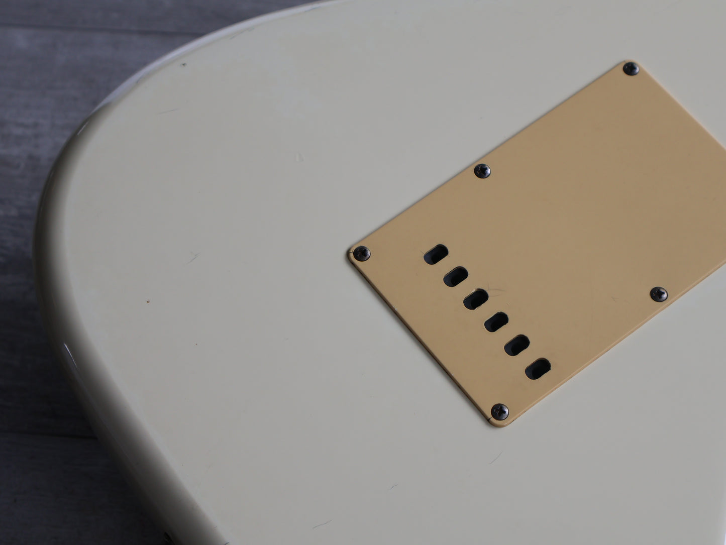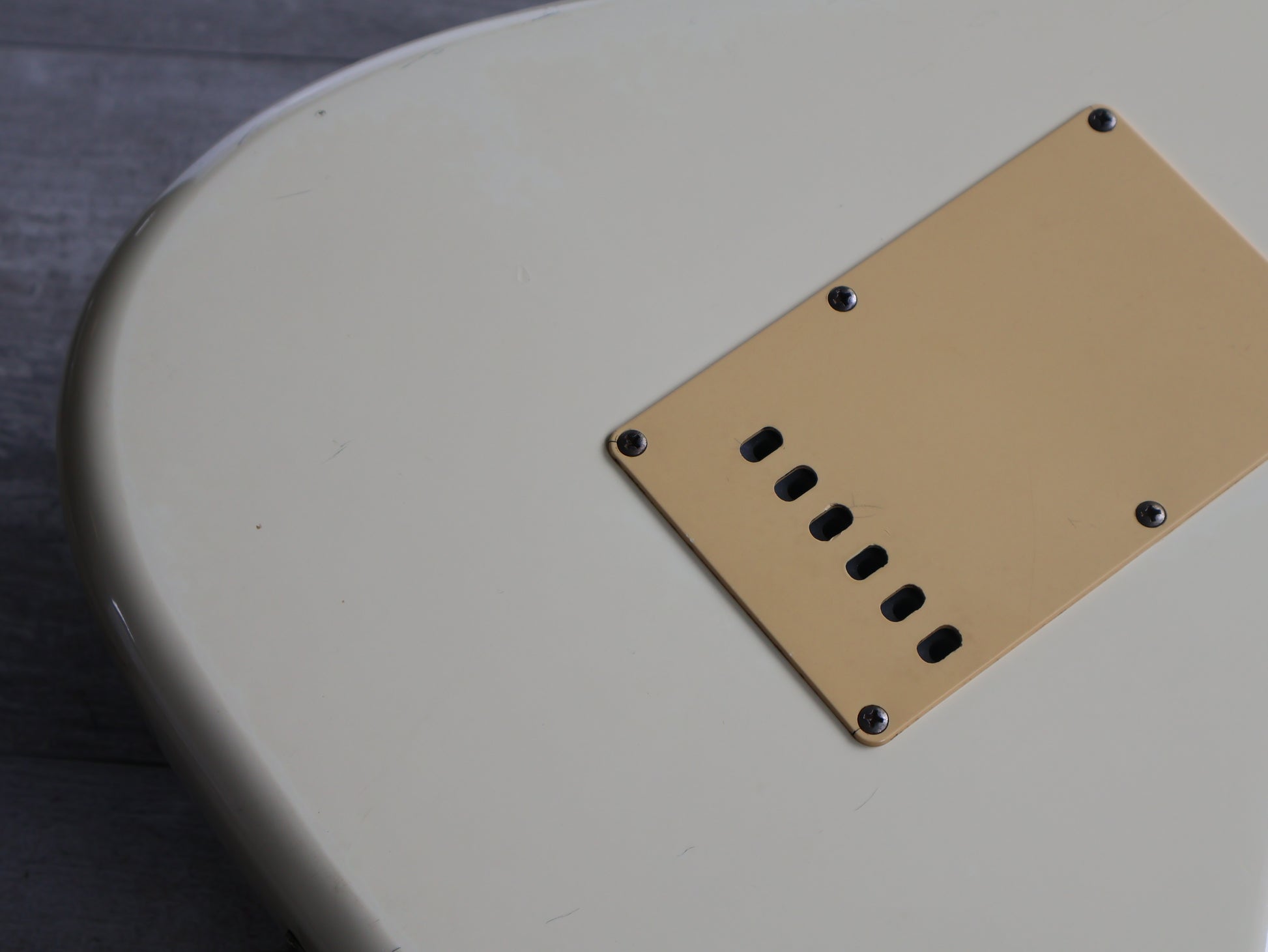 Japanese made as part of the iconic Fender "JV Series" of guitars that came out of the Fujigen factory in the mid 1980's, the ST72-55 was the brand new non-scalloped version of the famous Ritchie Blackmore model released in the 1984 catalog.
