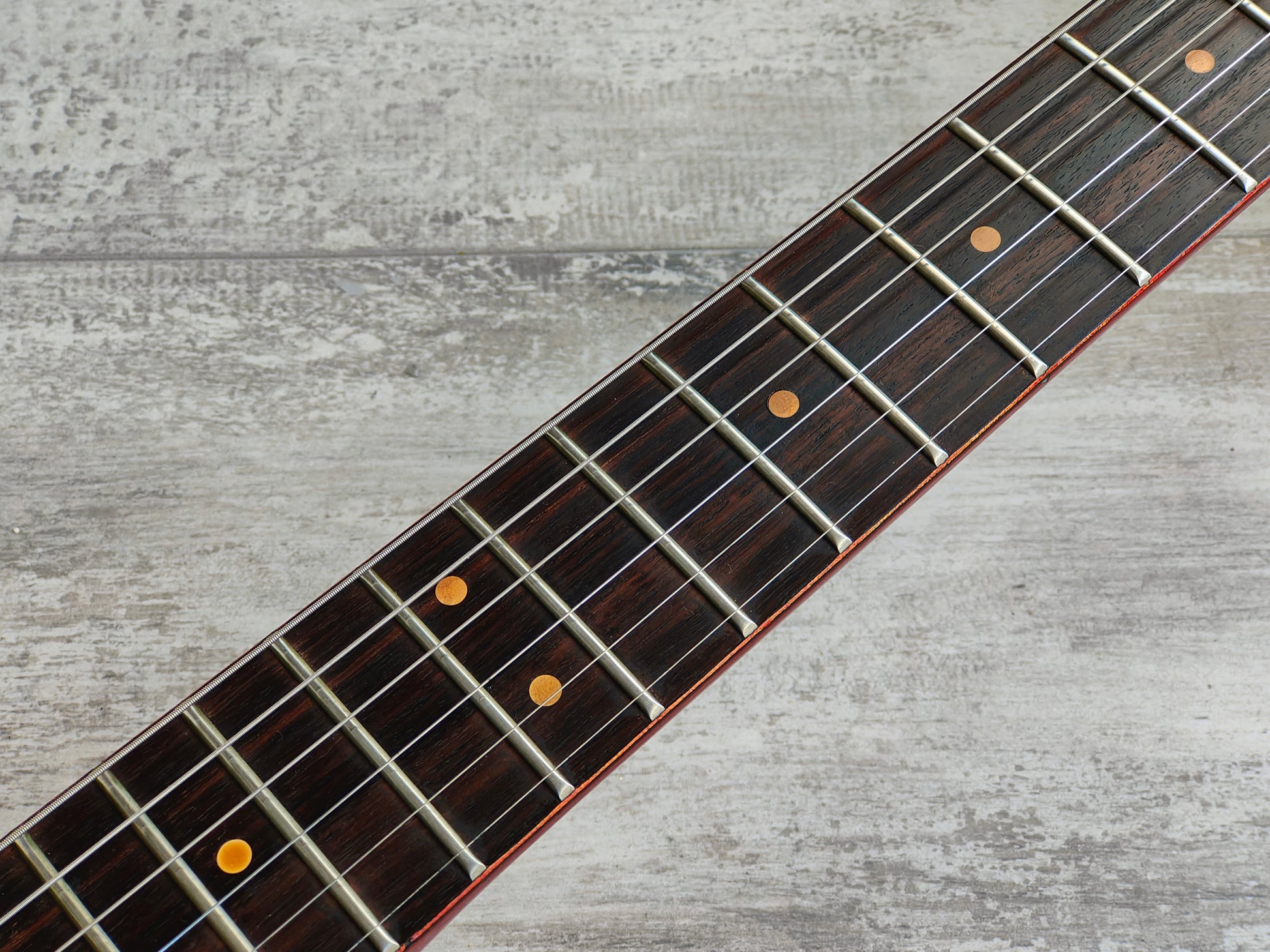 Good vintage condition as pictured with a few bumps and dings from regular use. Has replacement knobs, otherwise it appears close to all original. Given a basic setup and service prior to listing including a fret polish and fretboard oil. Frets are low but smooth and play well, neck is straight and the truss works as it should.