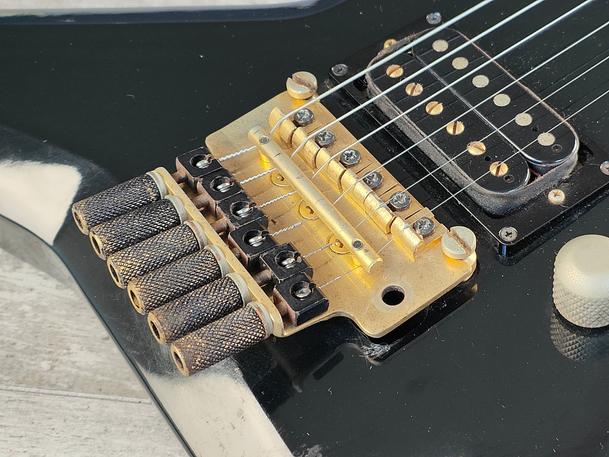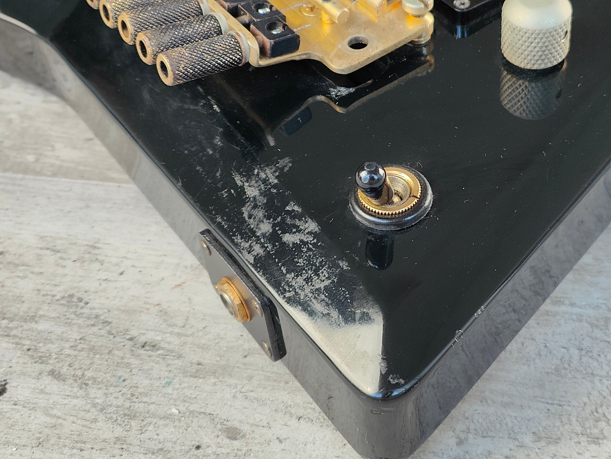 I genuinely mean this (as the owner of a guitar shop and collector of oddball Japanese guitars), the Greco Tusk models are my favourite series of guitars from the 1980's. Designed around Greco's "Sky Diver" tremolo system, it's essentially a headless compact Explorer/Destroyer that still has an obsolete pointy headstock that's only really there for the string locks.