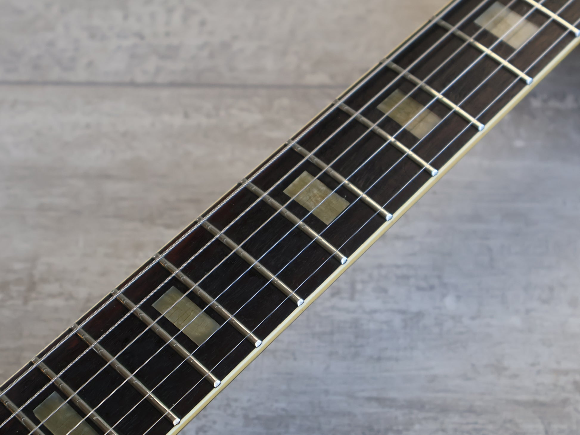 Made in Japan in early 1984, the Greco SS-600 "Super Real" was a reissue of the classic late 70's Gibson SG. Wine Red finish on a solid beveled mahogany body set to a slim 60's style mahogany neck and a 22 fret rosewood fingerboard (12" radius, 43mm nut width), it weighs 3kg's. Looks to be almost all original including Greco branded tuners, a harmonica style bridge, Maxon Screamin' humbuckers and Japanese wiring with some replacement knobs.