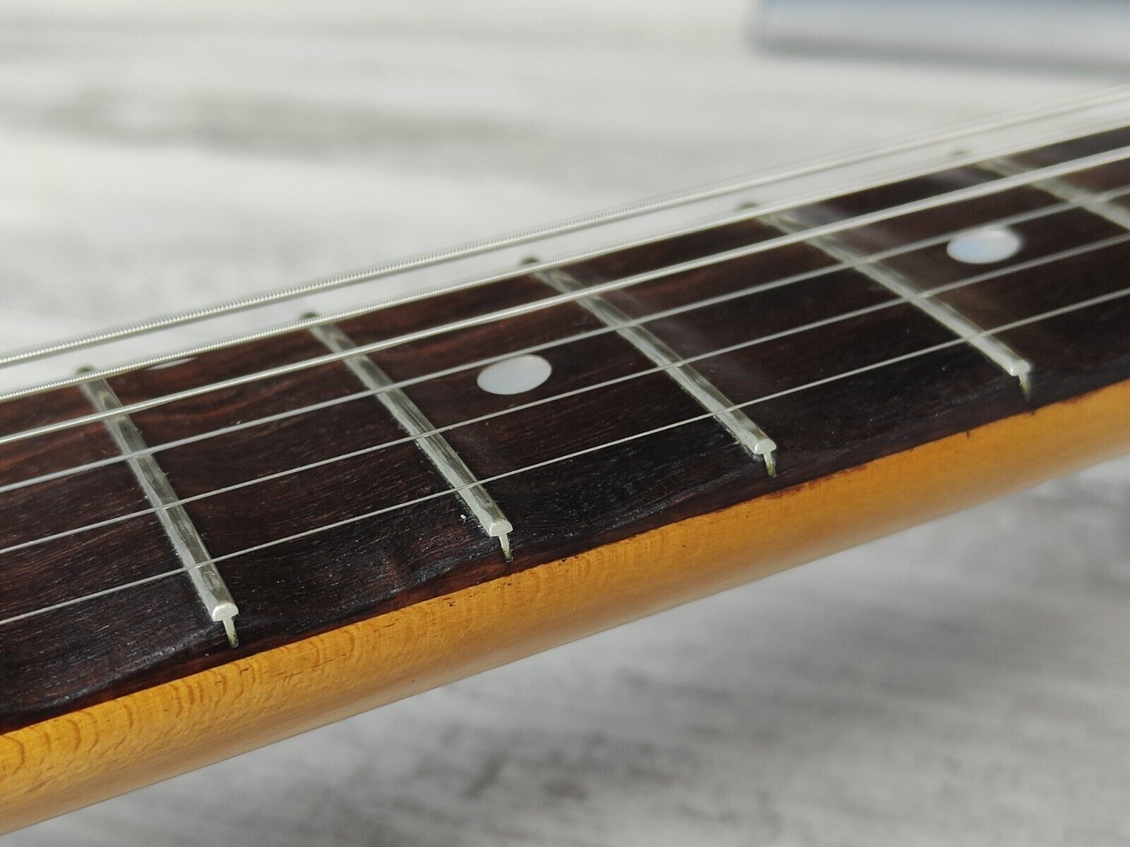 Well used vintage condition with a few dings and plenty of nicotine fading to the Olympic White as pictured, frets are shiny and the neck is straight with a perfectly functional truss. Professionally serviced prior to listing. Seems to be all original, neck pickup not functional.