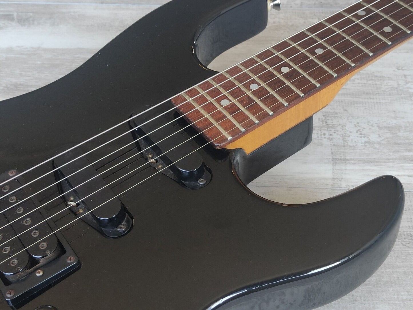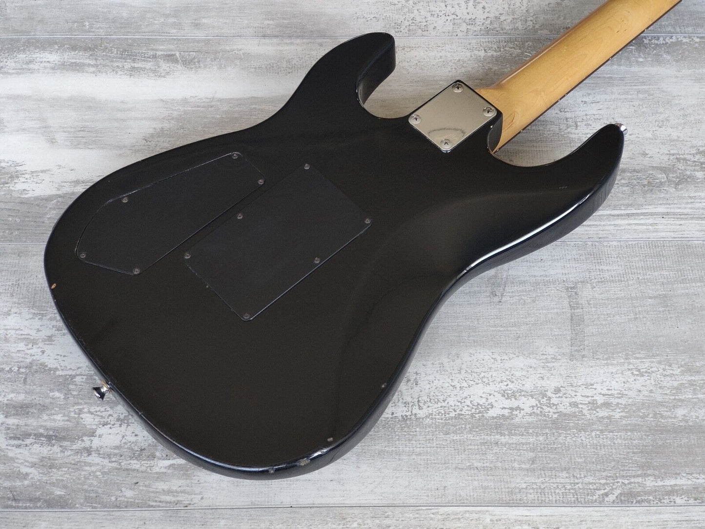 Part of the NJ series of Japanese made guitars from the 1980's, this is a BC Rich ST-III model in gloss black with a matching headstock. Maple neck with a 22 fret rosewood fingerboard, it weighs 3.6kg's. Loaded with the original BC Rich HSS pickups controlled by on/off toggles and a master volume/tone control. R stamped tuners and a licensed Floyd Rose tremolo system keep it tuned to perfection.
