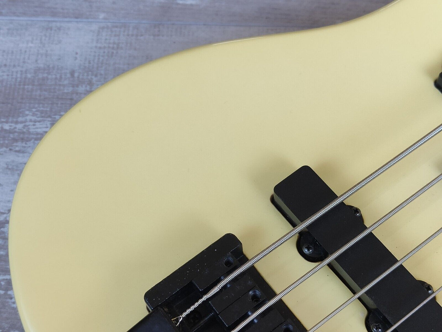 Made in Japan in 1986, the F-100P was the the PJ model from the rare Greco Formula series of headless basses built around the Steinberger system. Neckthrough construction with an aged pearl white finish, 34" scale length rosewood fingerboard with easy access to all 26 frets, weighs a nimble 3.6kg's. Loaded with the original PJ passive pickup configuration controlled by a pickup blend knob and master volume/tone controls.