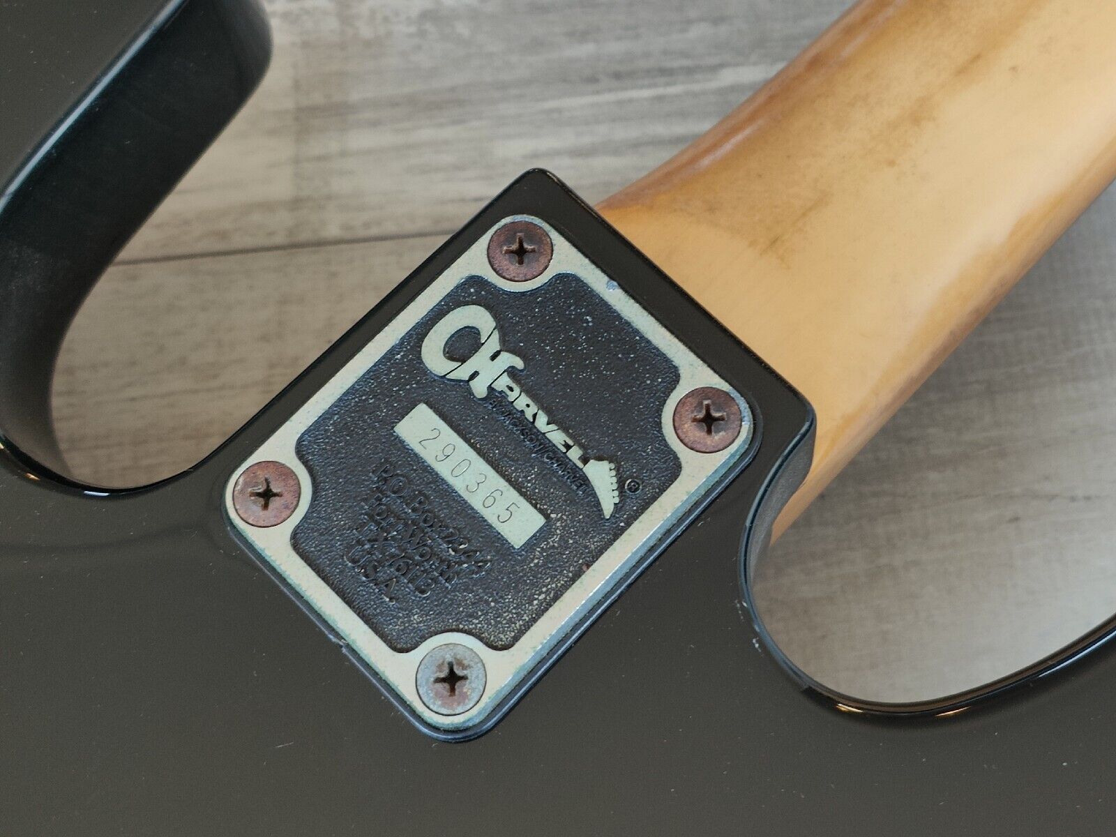 Japanese made in 1987, the Charvel Model 2B features a poplar body with a maple neck and a rosewood fingerboard. This one is loaded with passive Jackson branded PJ pickups (a J-20 and a J-150) controlled by master volume, pickup balance and master tone knobs. Weighs 4.5kg's and wears a glossy black finish.