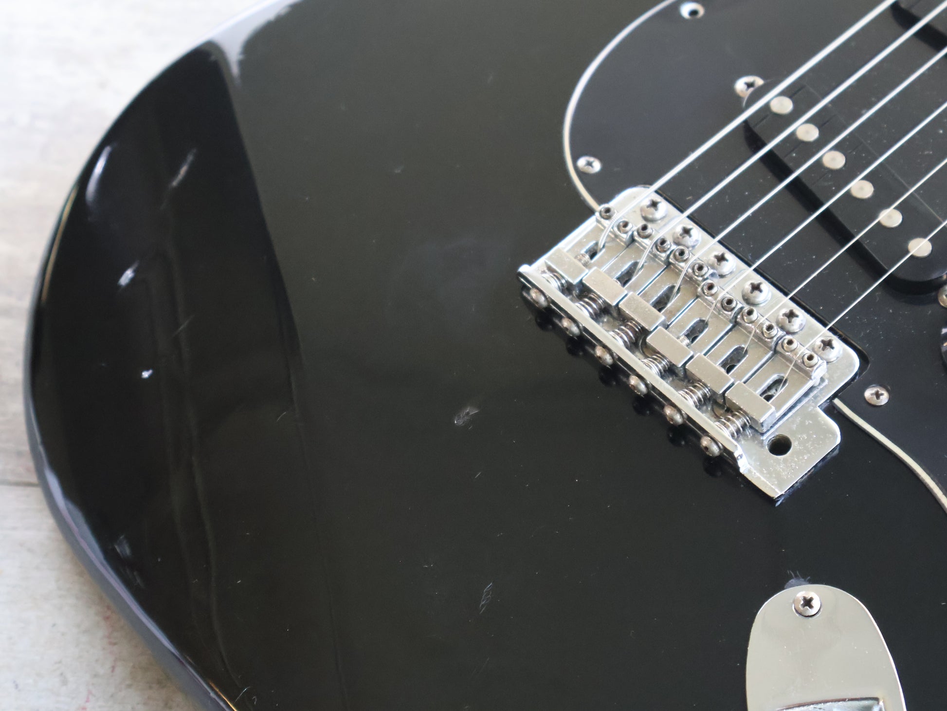 Made by the Fujigen factory in 1987, the ST54 was made by Fender Japan as an affordable replica of the famous 1954 Stratocaster. With a basswood body wearing a gloss black finish bolted to a maple neck with a nice '54 V profile and a 7.25" radius, it weighs 3.9kg's. Loaded with Fender Japan original ceramic pickups and a 5-way selector along with Fender stamped saddles and vintage style tuners, this one has a replacement black pickguard and a brand new bone nut otherwise it appears all original.