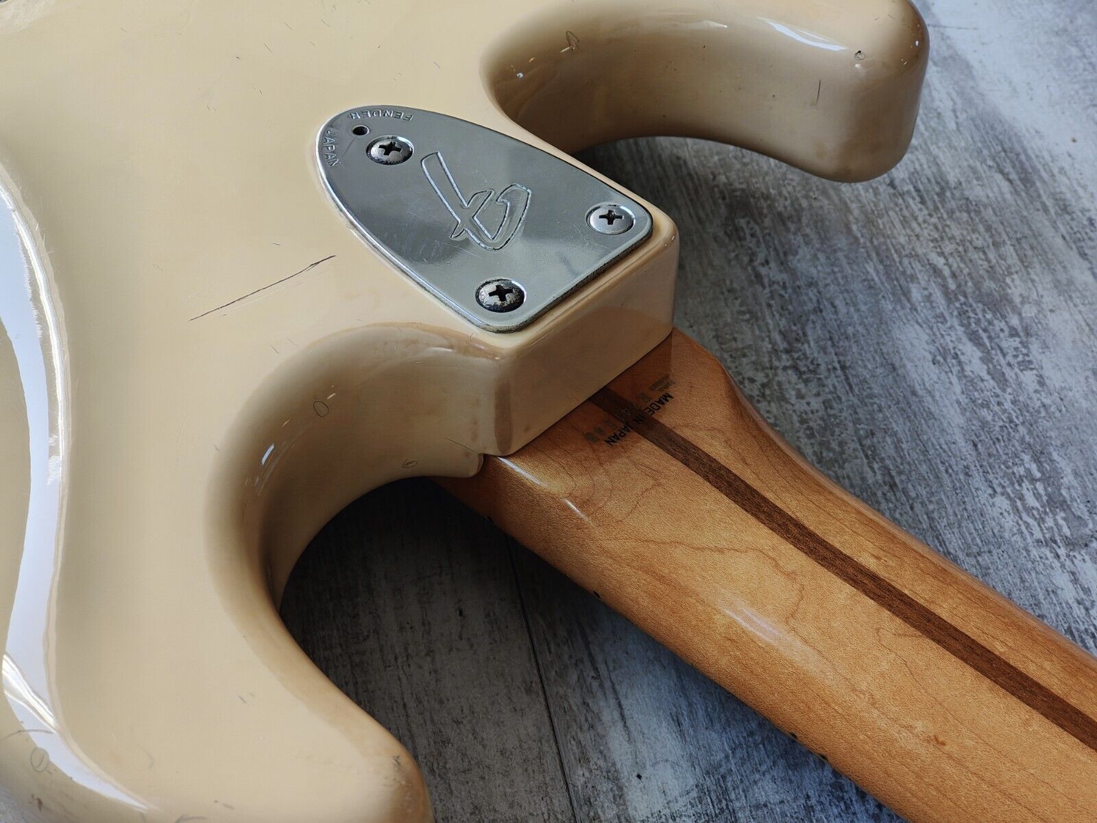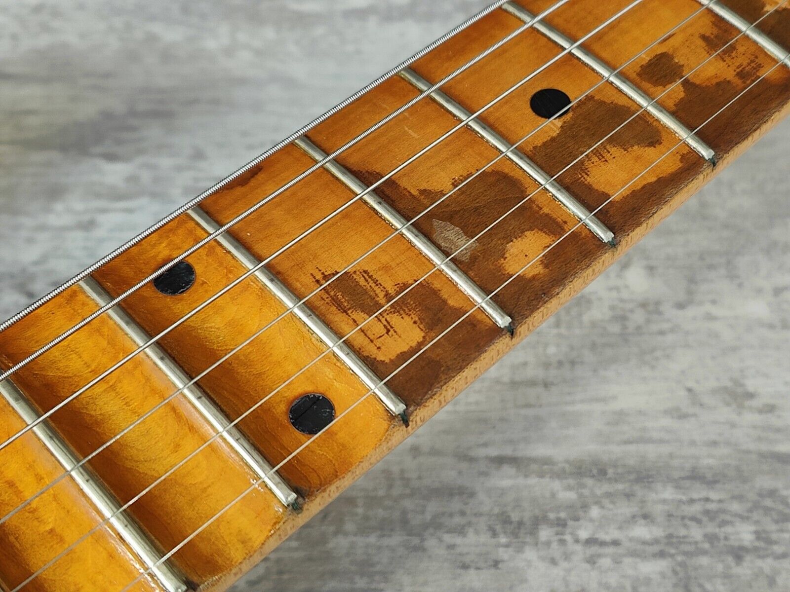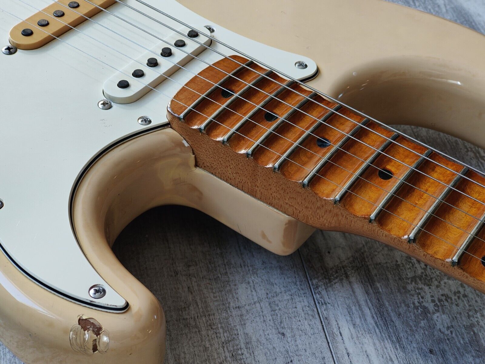Part of the famous "E Series" of guitars made by the Fujigen factory in the mid 1980's, this is a non-catalog model '72 reissue with a factory fitted "reverse headstock" (or just a Lefty neck with a right handed nut).