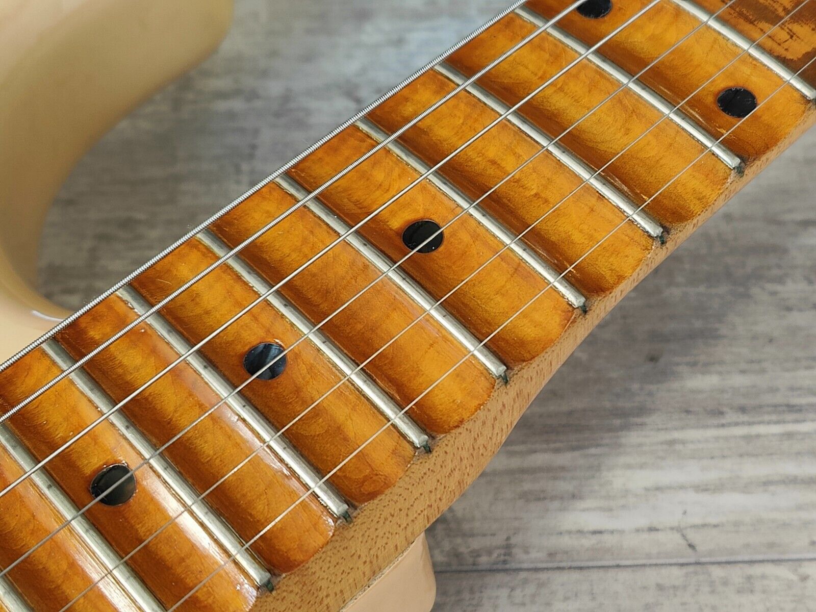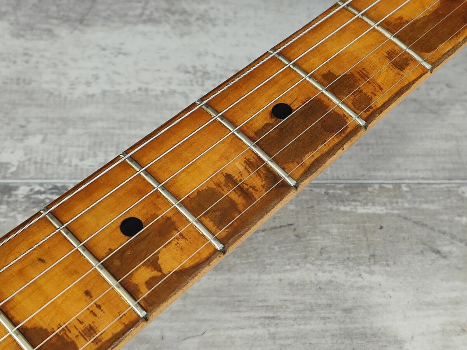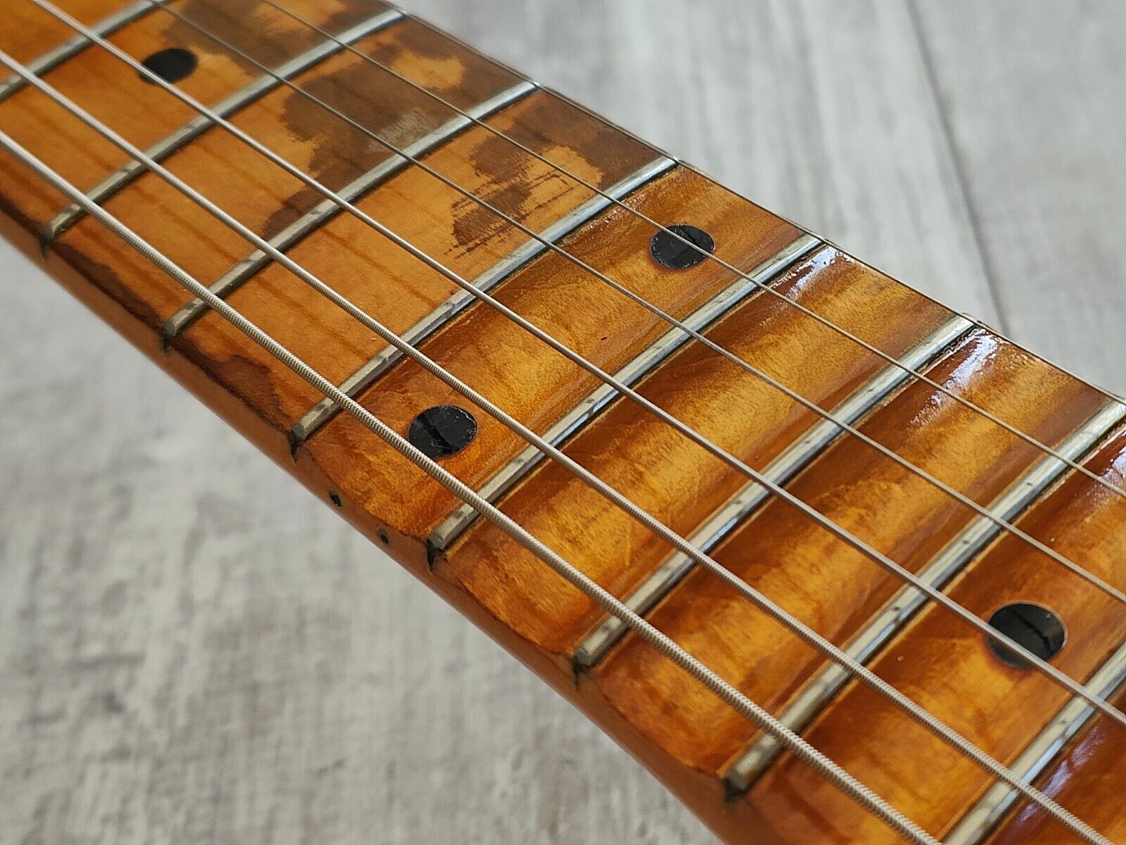 Part of the famous "E Series" of guitars made by the Fujigen factory in the mid 1980's, this is a non-catalog model '72 reissue with a factory fitted "reverse headstock" (or just a Lefty neck with a right handed nut).