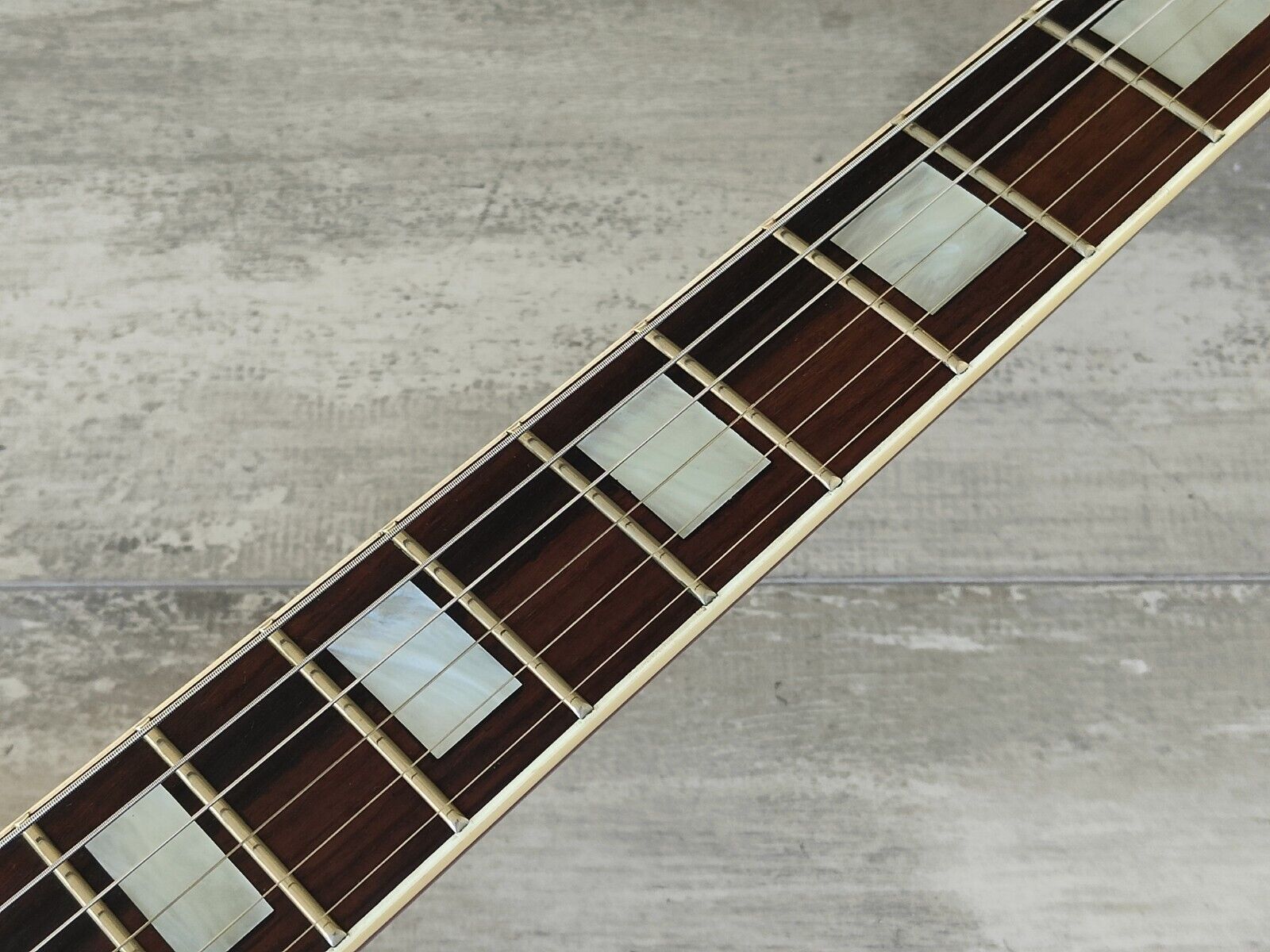 Made by the Fujigen factory in 1987, this appears to be a customer order from the Greco Japan EGC series of Les Paul Custom models. Flamed maple top with a mahogany body and slim 60's mahogany neck, 22 fret rosewood fretboard with block inlays, weighs a beefy 4.45kg's. Loaded with a pair of Seymour Duncan DCJ "Duncan Custom" humbuckers, it's got a brand new bridge and tailpiece installed along with a new three-way pickup selector.