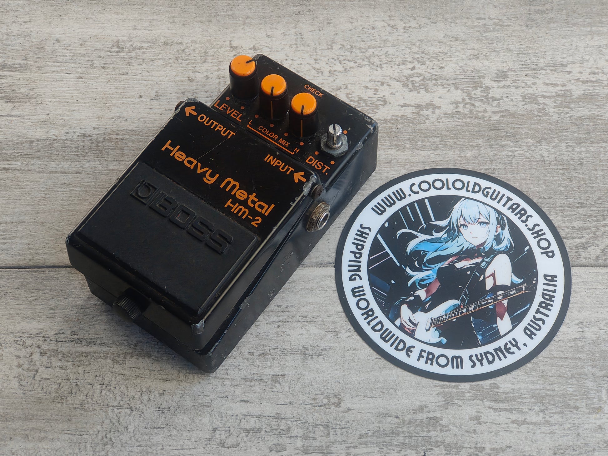 The HM-2 features a Level knob for the overall volume, a Color Mix section to boost/cut the Treble and Bass and a Distortion knob to increase the level of chainsaw..