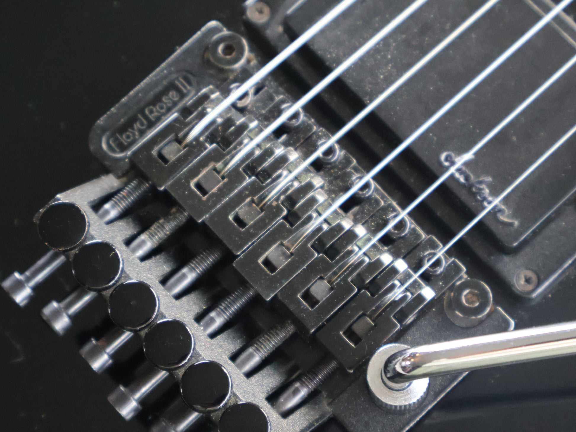 Japanese made in 1988, the Model 2 was the simple pleasure from the Jackson/Charvel catalog. Basswood body with a maple neck and 22 fret rosewood fingerboard (12" - 16" compound radius), it's loaded with a single Jackson J-90C humbucker controlled by a master volume knob (push pull to split the coil) and weighs 3.6kg's. This one has the tremolo upgraded to a Floyd Rose II system along with a new locking nut so it's safe to dive-bomb for days.