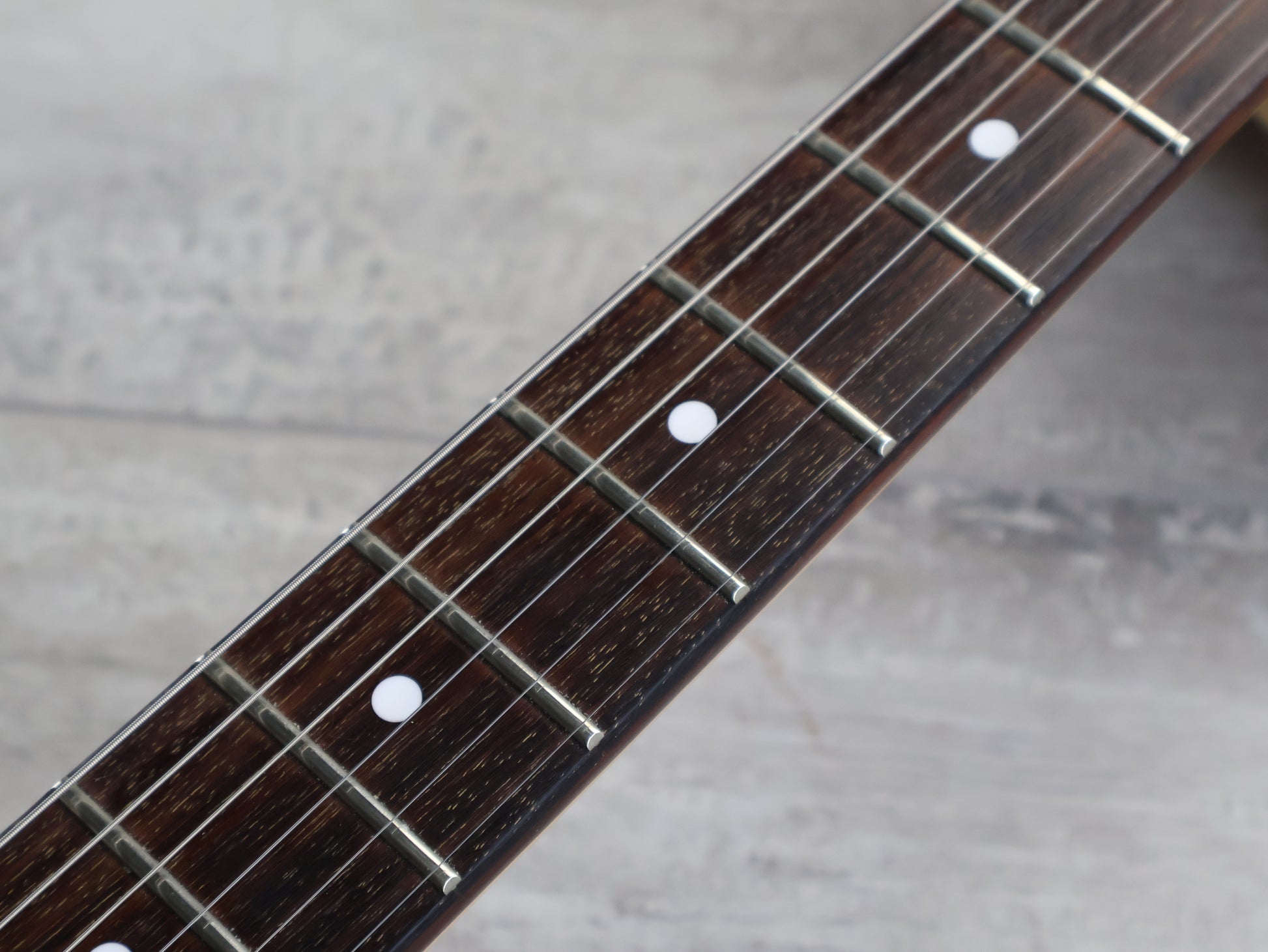 Restrung and given a basic service prior to listing, plays great and sounds very nice. Neck is straight and the truss works well, jumbo frets are smooth and have plenty of life.