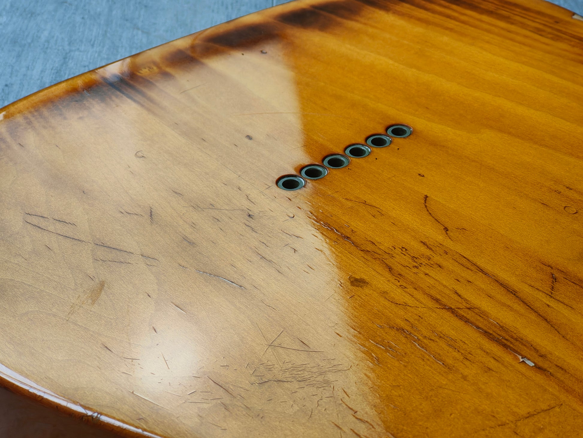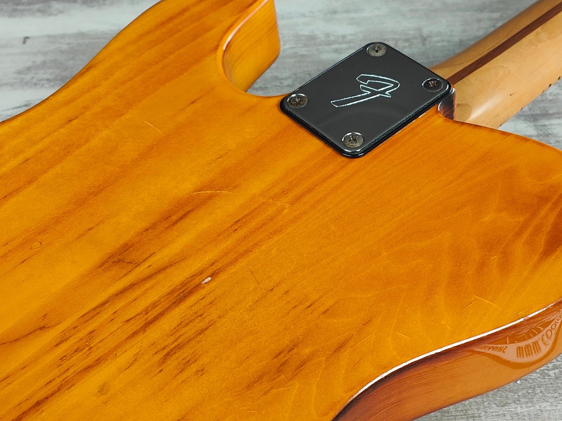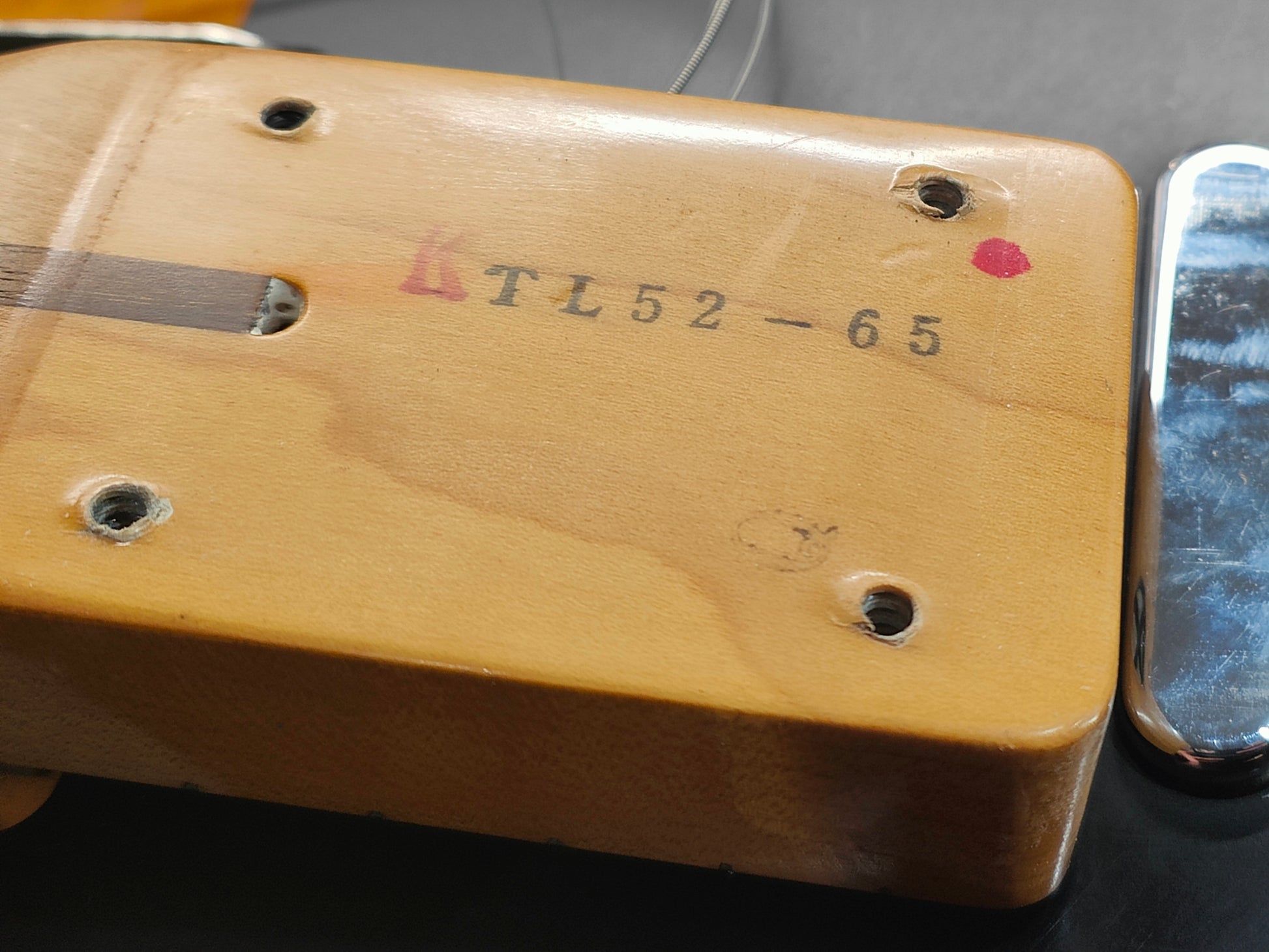 Made by the Fujigen factory in 1988, this Fender TL52-65 was a special model in the Fender Japan catalog that features their short-lived "Charcoal Burst" finish. With a lightly charcoaled American Basswood body bolted to a maple neck with a slim U profile (7.25" radius, 42mm nut width), it weighs 3.3kg's. This one has some aftermarket CTS pots and a USA bridge pickup along with the original Fender Japan neck pickup, brass saddles and Gotoh made "Vintage Style" machine heads.