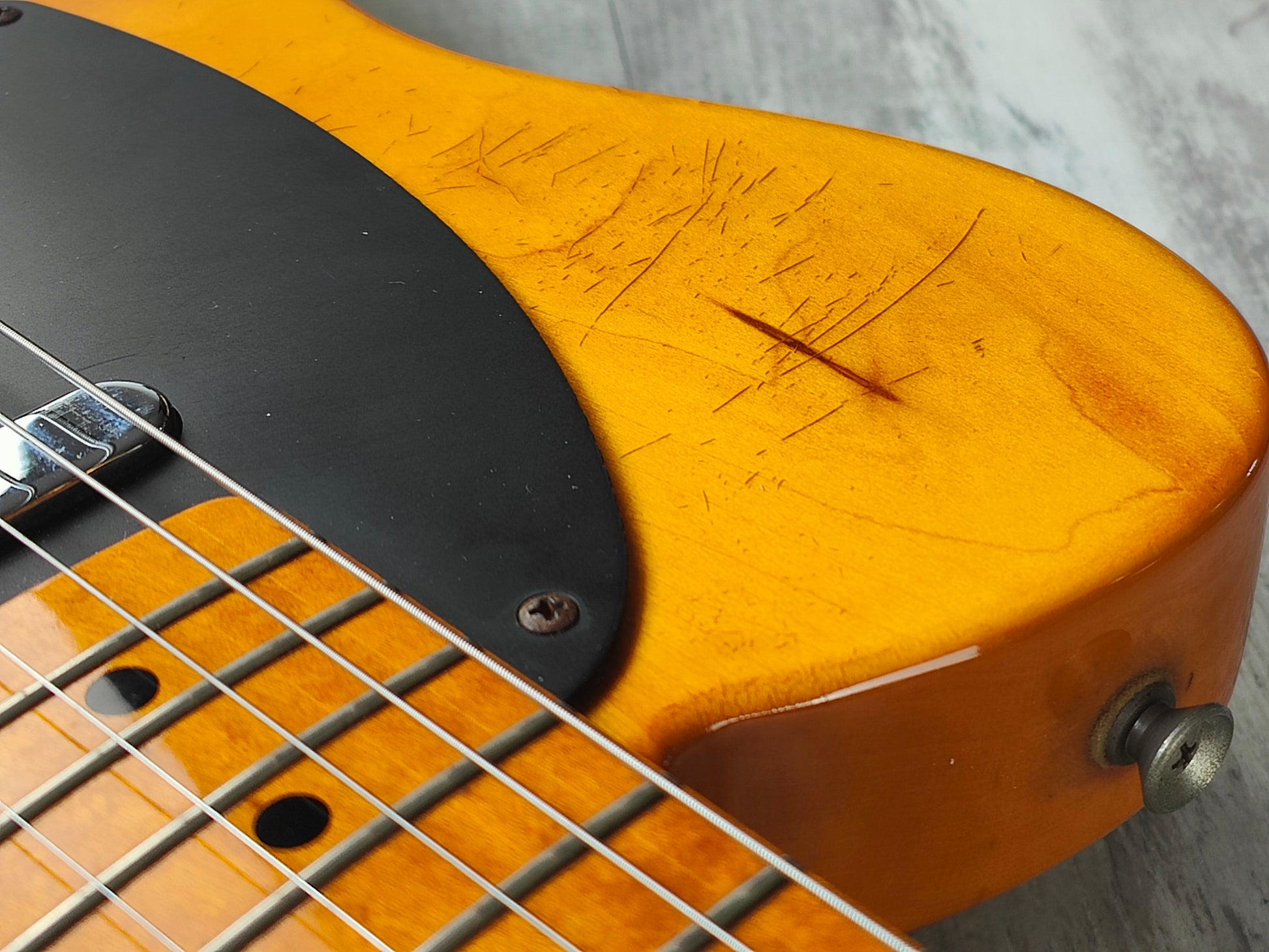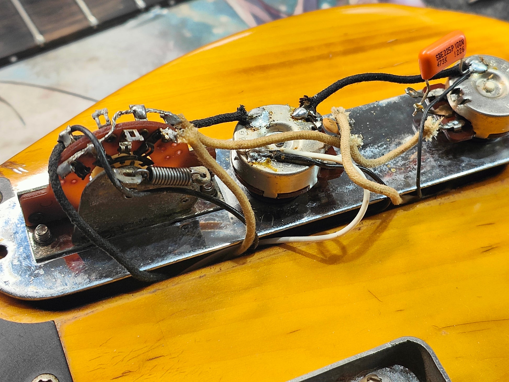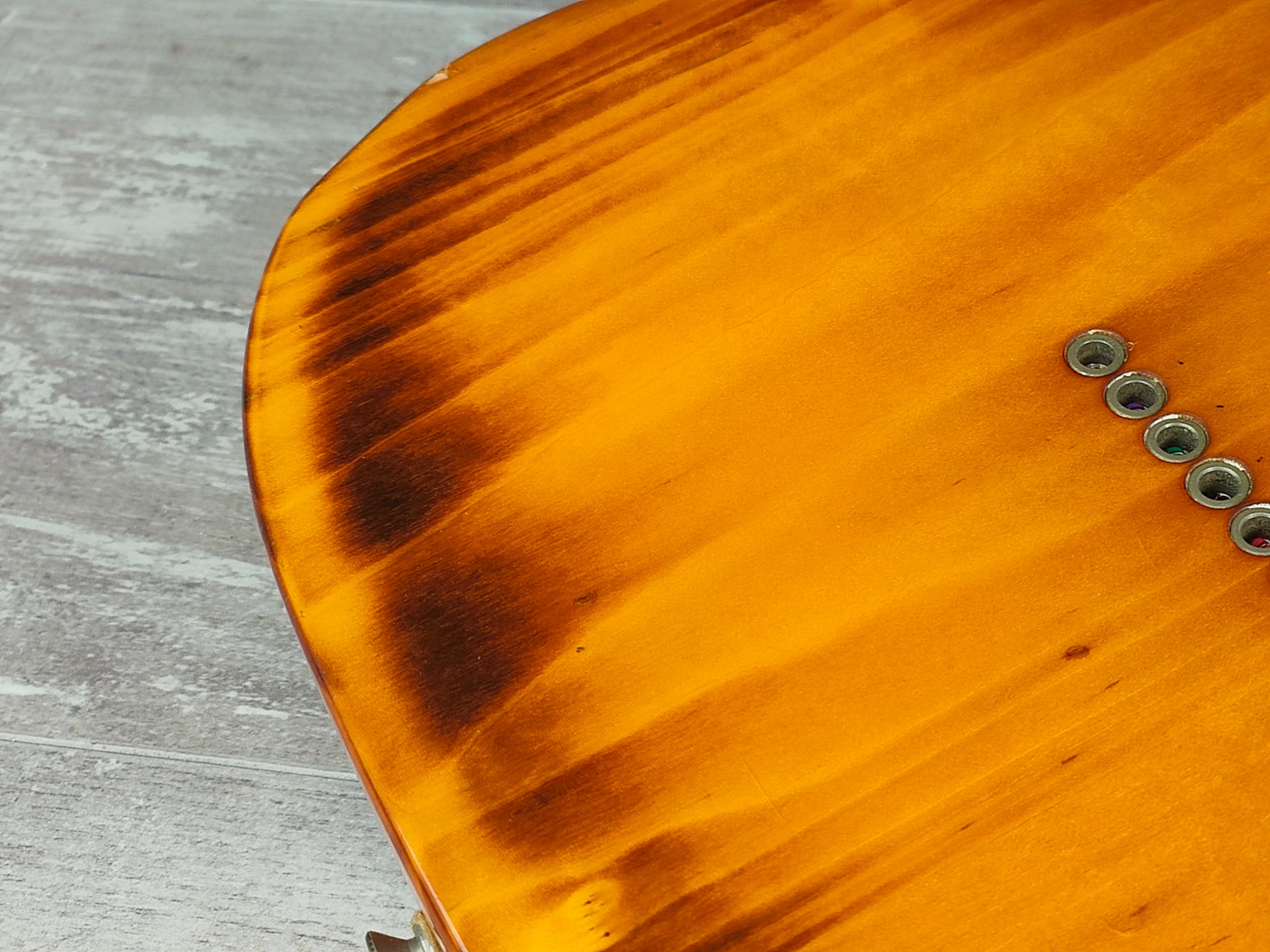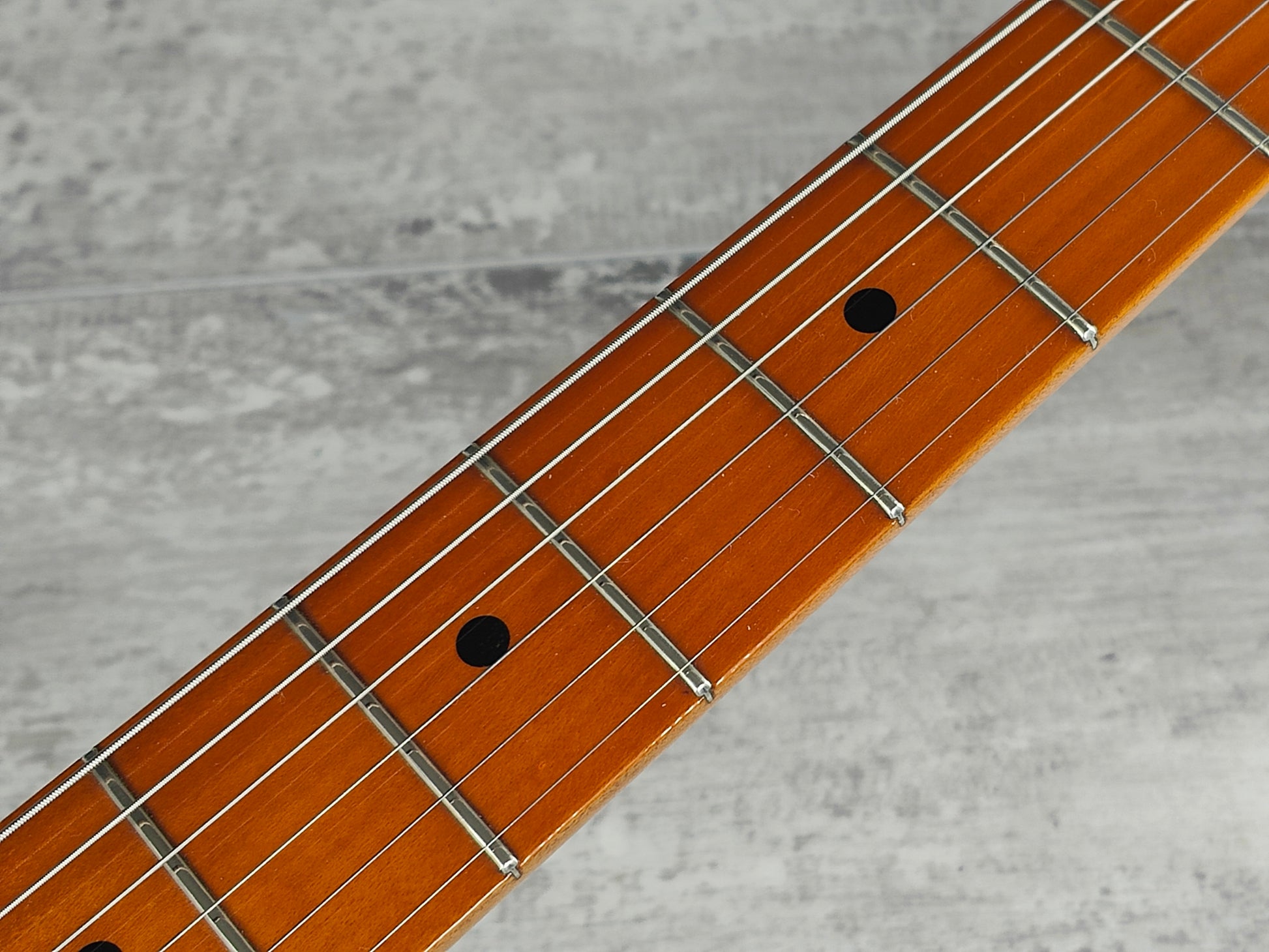 Made by the Fujigen factory in 1988, this Fender TL52-65 was a special model in the Fender Japan catalog that features their short-lived "Charcoal Burst" finish. With a lightly charcoaled American Basswood body bolted to a maple neck with a slim U profile (7.25" radius, 42mm nut width), it weighs 3.3kg's. This one has some aftermarket CTS pots and a USA bridge pickup along with the original Fender Japan neck pickup, brass saddles and Gotoh made "Vintage Style" machine heads.