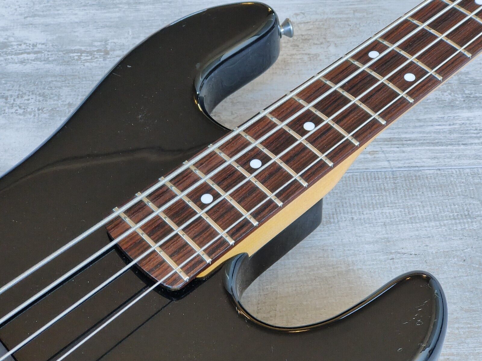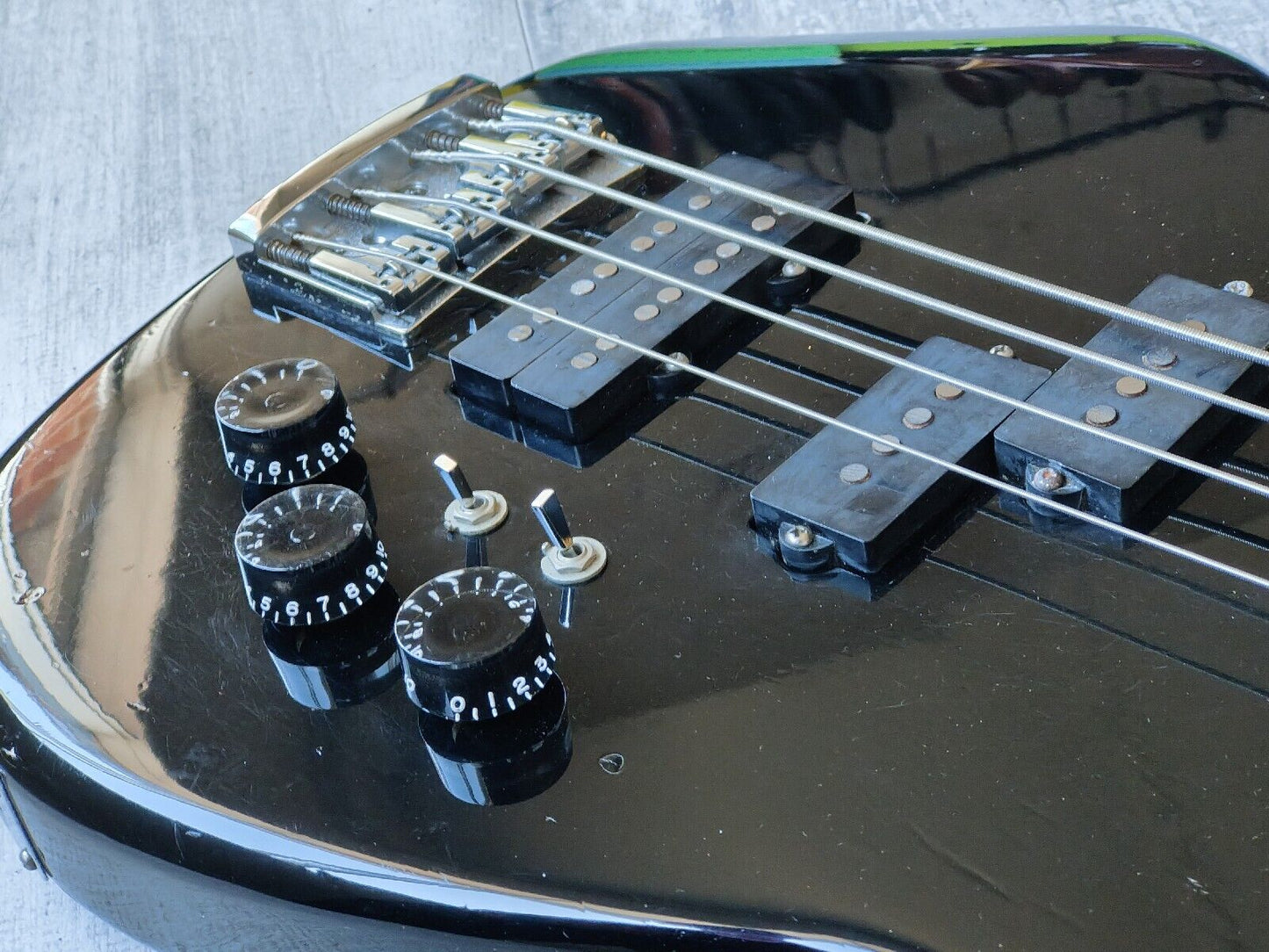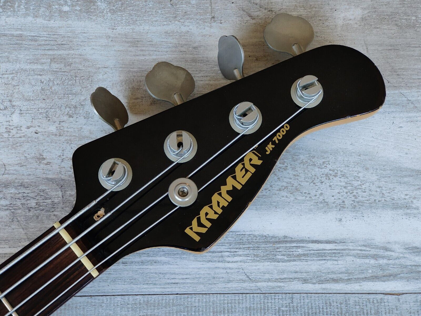 As seen in the 1988 Kramer catalog, the JK-7000 was made by ESP in Japan. Features an alder body with a maple neck and a 21 fret rosewood fingerboard (34" scale length, 43mm nut width), weighs just under 4.1kg's. Loaded with a PBX pickup in the neck position and a double JBX pickup in the bridge position controlled by a mini 3-way selector toggle, independent volume controls and a master tone control along with a coil split toggle for the JBX. Factory