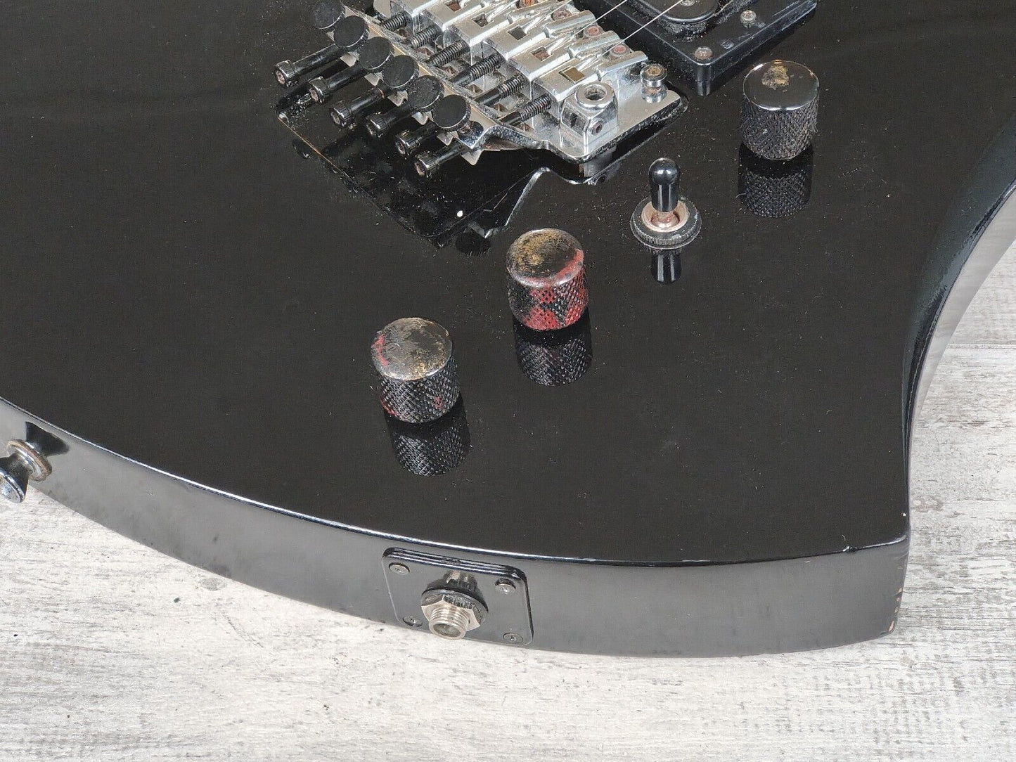 Good vintage condition, about standard for an 80's shredder. Appears to be all original. Given a basic service and Floyd balance along with a truss adjustment prior to listing. Frets were polished and are shiny and smooth with plenty of life left.