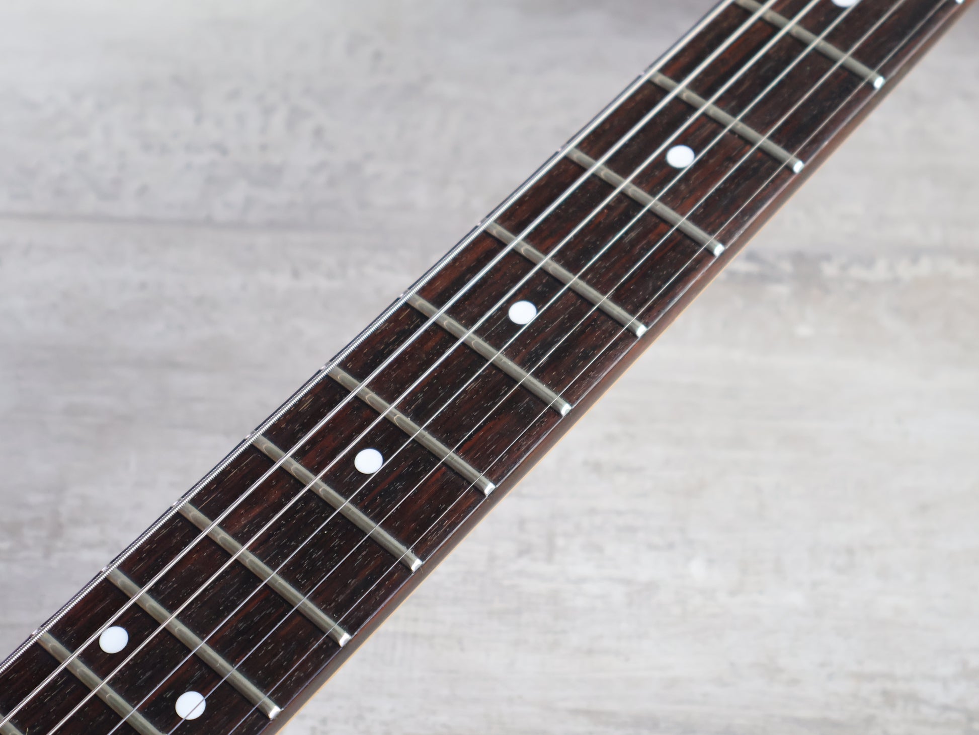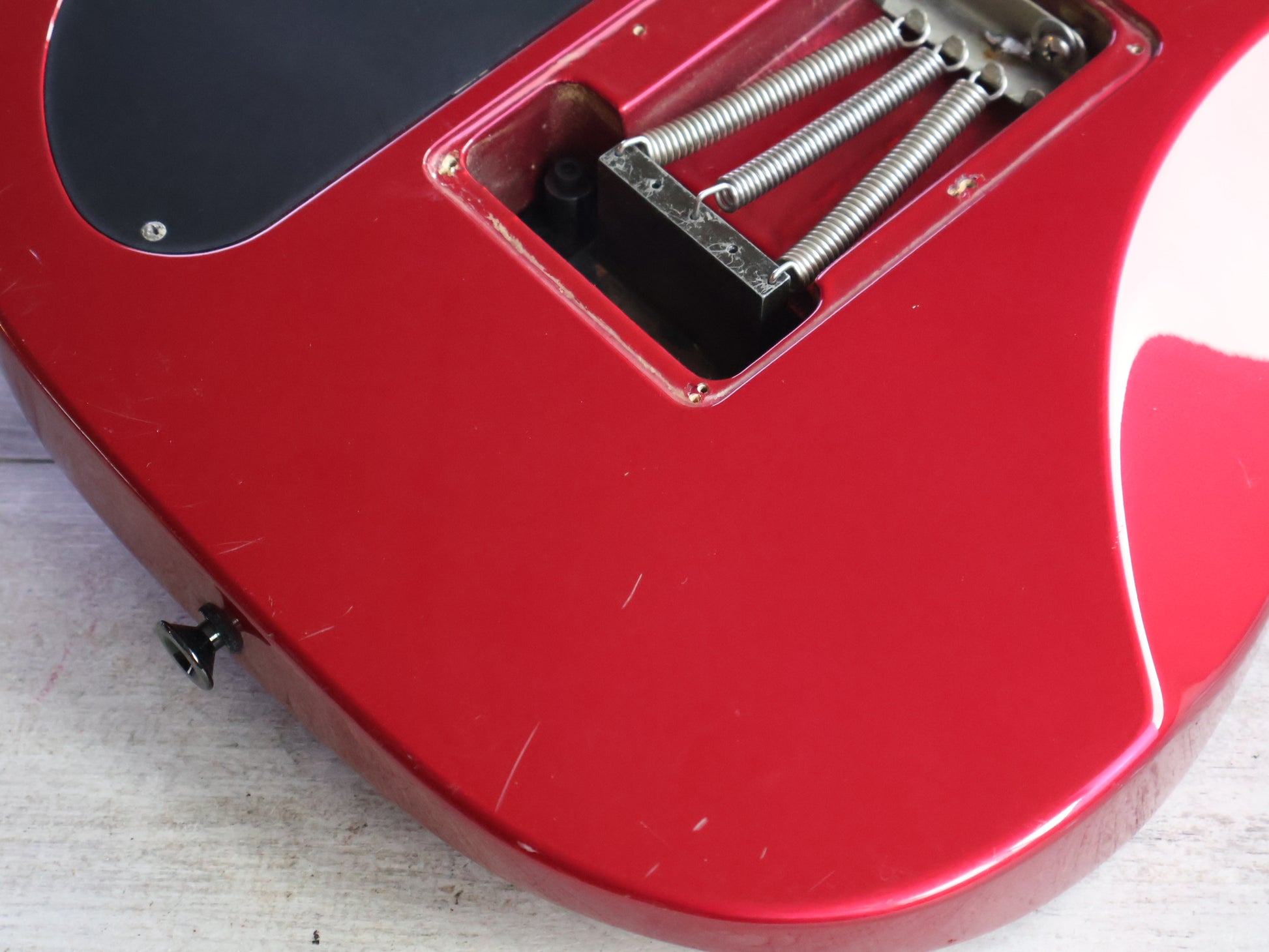 Good overall condition with some bumps and bruises from general use. The neck is straight and the truss adjusts freely, the frets are shiny with plenty of life left. There's a small cosmetic crack from the locking nut being over-tightened but nothing structural.