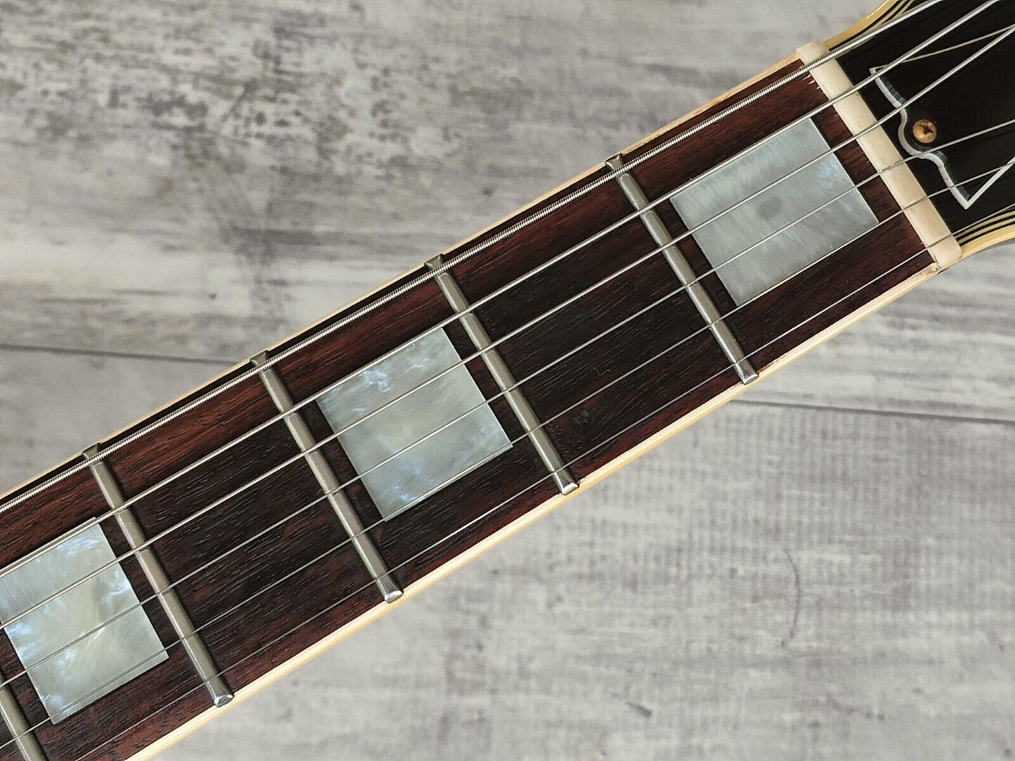 Clean vintage condition as pictured with a few signs of wear as pictured, given a full deep clean and professional setup prior to listing including a fretboard oil, fret polish, truss adjustment and electronics flush. The frets have some light wear and tear but play smooth and the neck is nice and straight.