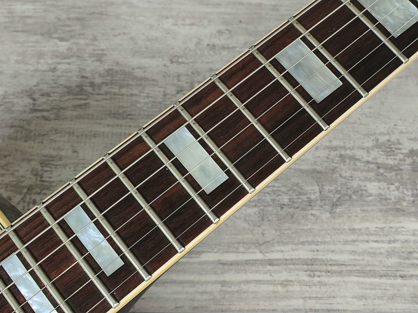 Made in Japan by the Fujigen factory in 1989, this is only the second Greco Les Paul Custom model we've ever had come through the store that features a slim soft V neck profile! Solid mahogany body with a maple cap, mahogany neck and a rosewood fingerboard, weighs 4kg's. Looks to be all original with the factory Greco humbuckers and Japanese tuners/hardware.