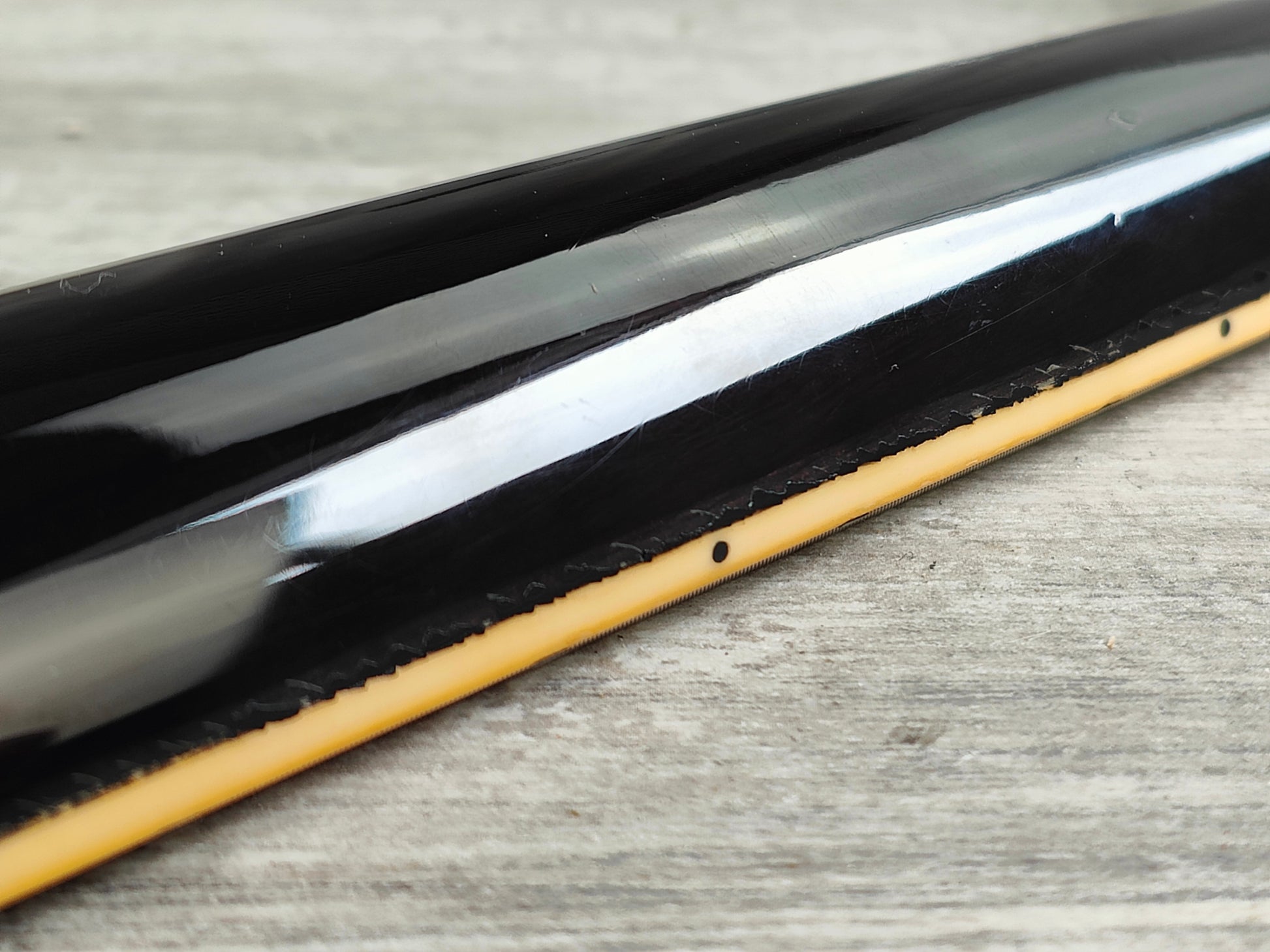 Received a full professional setup and service prior to listing including a fretboard oil, fret polish and truss adjustment. The frets have some light pitting but still play and bend smoothly and the neck is straight. There was some light separation of the binding along the top of the neck which led to some paint chipping as pictured, we had the area repaired professionally so it's smooth to touch and structurally solid even through it's still slightly visible.