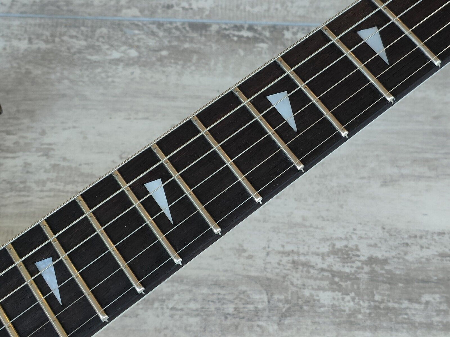 Made in Japan during a partnership between Vivian Campbell and Tokai, the VC-75 was a recreation of Campbell's Rand model. Built using a soft maple body with a hard maple cap, slim maple neck with a 27 fret rosewood fingerboard (12" radius, 648mm scale length), it weighs 3.7kg's. Loaded with the original TRT-1 tremolo system and L-White Super Drive bridge pickup (with an unbranded aftermarket neck pickup) mounted to a factory custom pickup ring. The humbuckers are controlled by a master volume knob, three-way mini toggle pickup selector and two coil split mini-toggles.