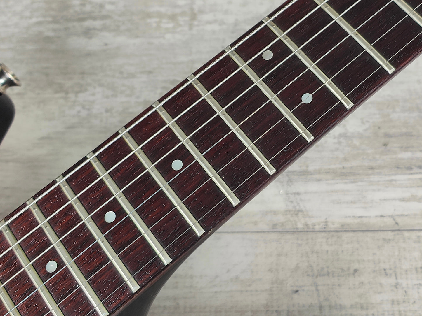 Good vintage condition as pictured with some basic wear and a few small dings, received a restring and basic setup prior to listing. Frets show very light wear but are shiny and clean and the neck is straight with a fully functional truss.