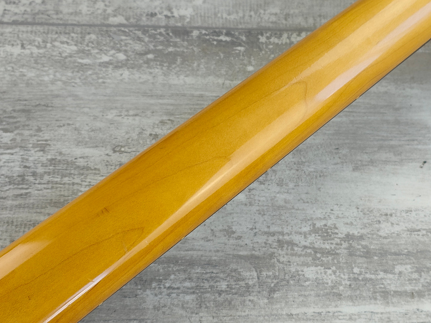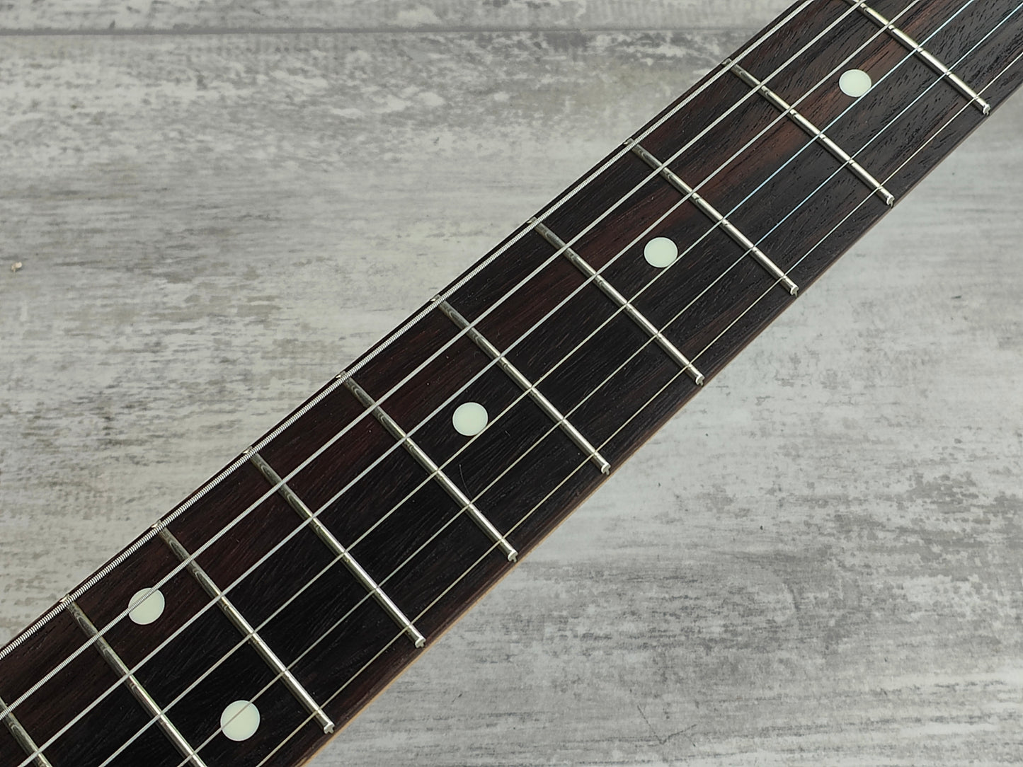 Given a full professional setup and service prior to listing including a fret polish, fretboard oil and truss adjustment, there's some light wear to the frets but they still play smooth and the straight neck plays well. There's some wear to the finish as pictured and two cracks in the thick poly that have no impact on the wood underneath and are purely cosmetic with no structural issues.
