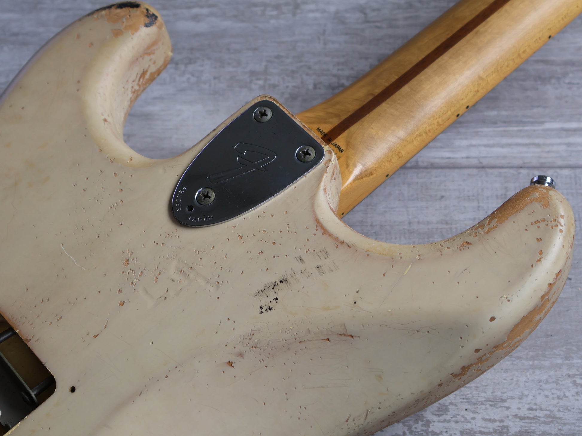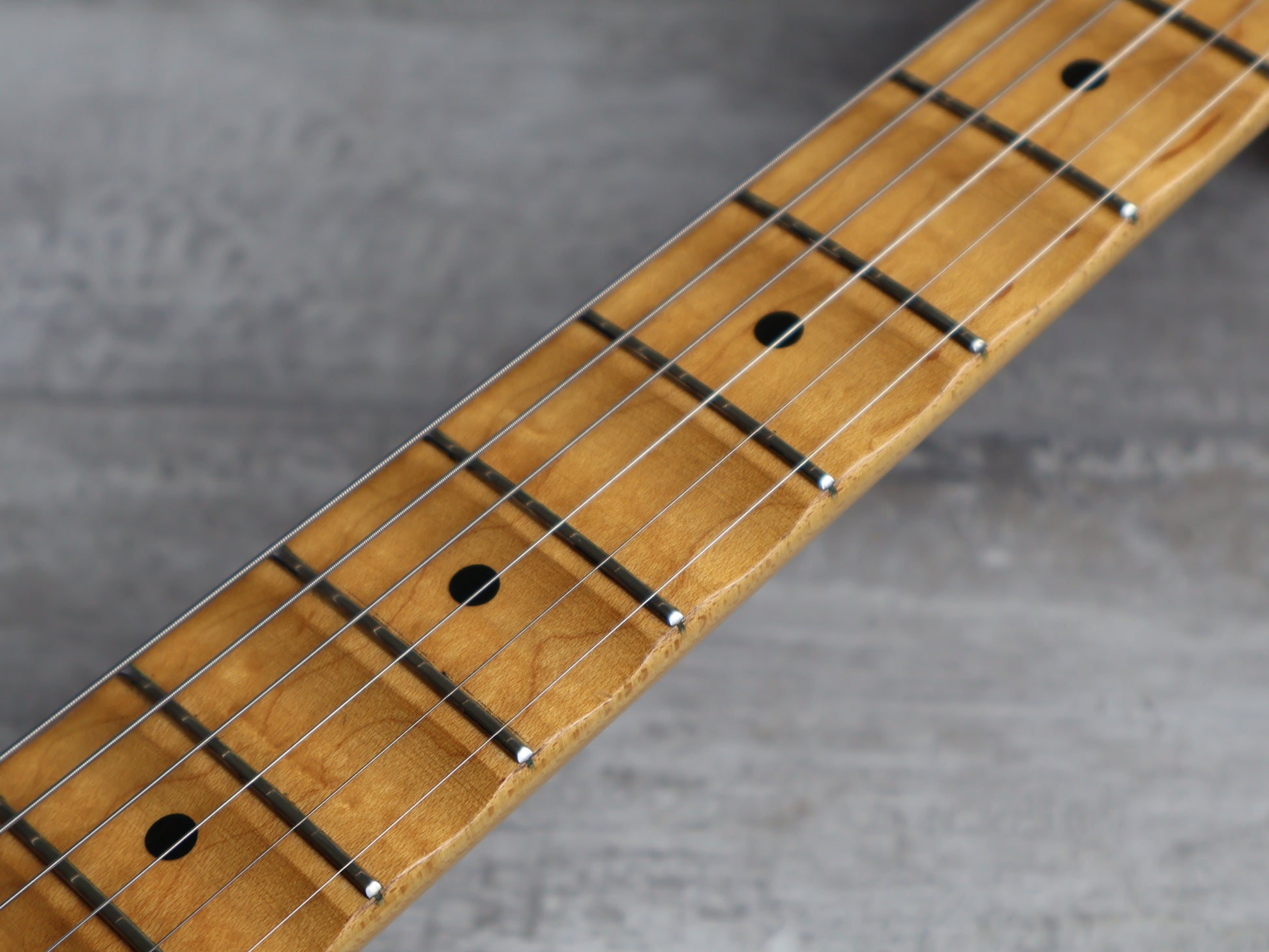 Beautifully relic'd condition with plenty of signs of wear and tear, a previous owner also gave it a swimming pool routing so you can load it with whatever pickups you need. The frets have plenty of life left playing shiny and smooth, the truss and neck-tilt adjustor work as they should and the neck is straight.