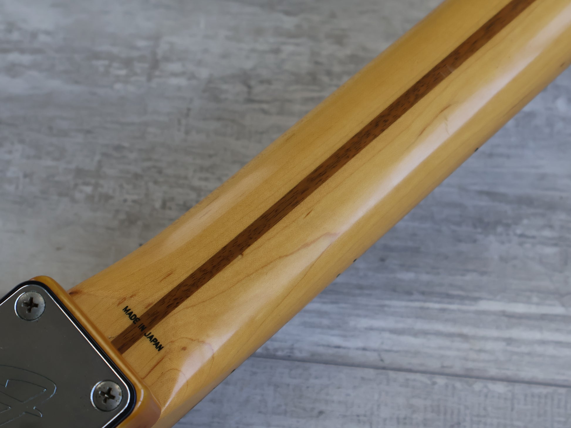 Made by the Fujigen factory in 1990, the TL72 was a reissue of the regular '72 model Telecaster (rather than the more famous Thinline or Custom models from that era). With a solid Sen ash body bolted to a slim C profile one-piece maple neck (7.25" radius, 21 frets), it weighs 3.6kg's. Loaded with the original TL-CURRENT pickups from Fender Japan controlled by full sized pots and a three-way selector along with Gotoh tuners and an ash-tray style bridge, this one appears to be all original.
