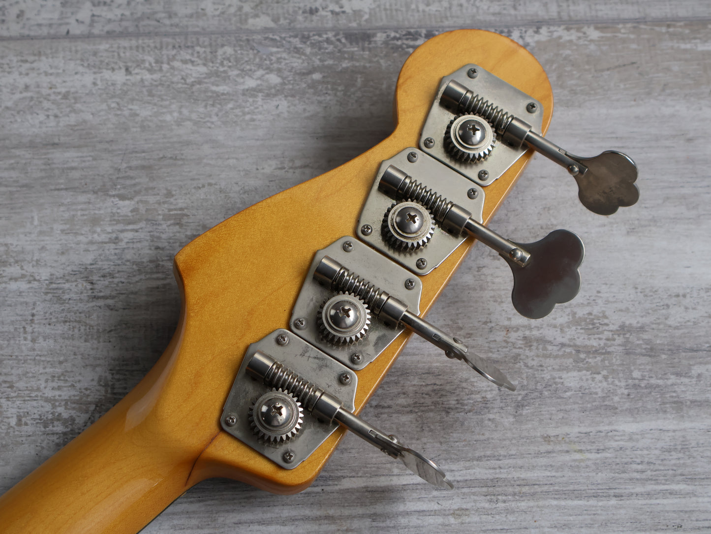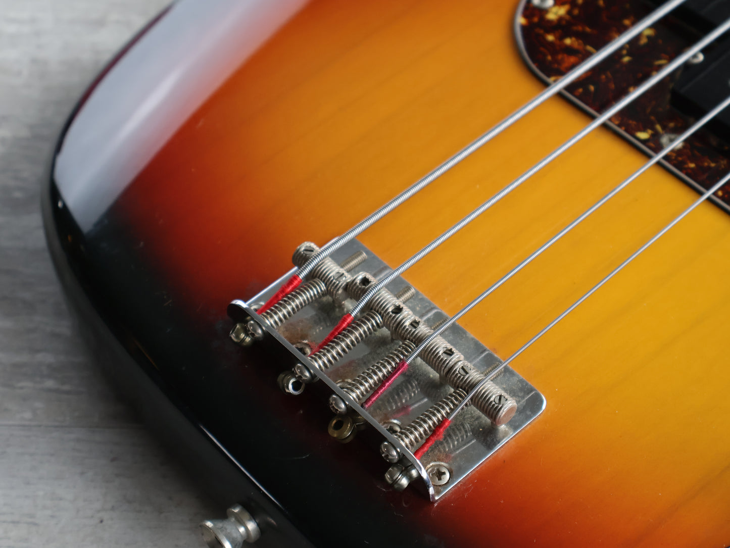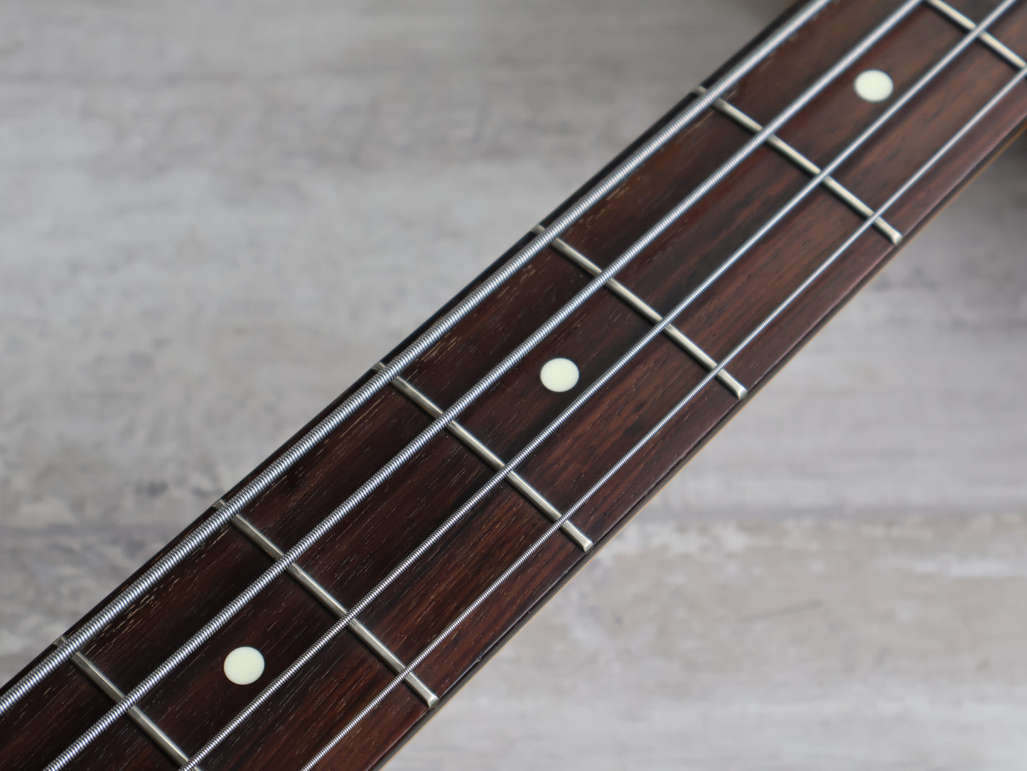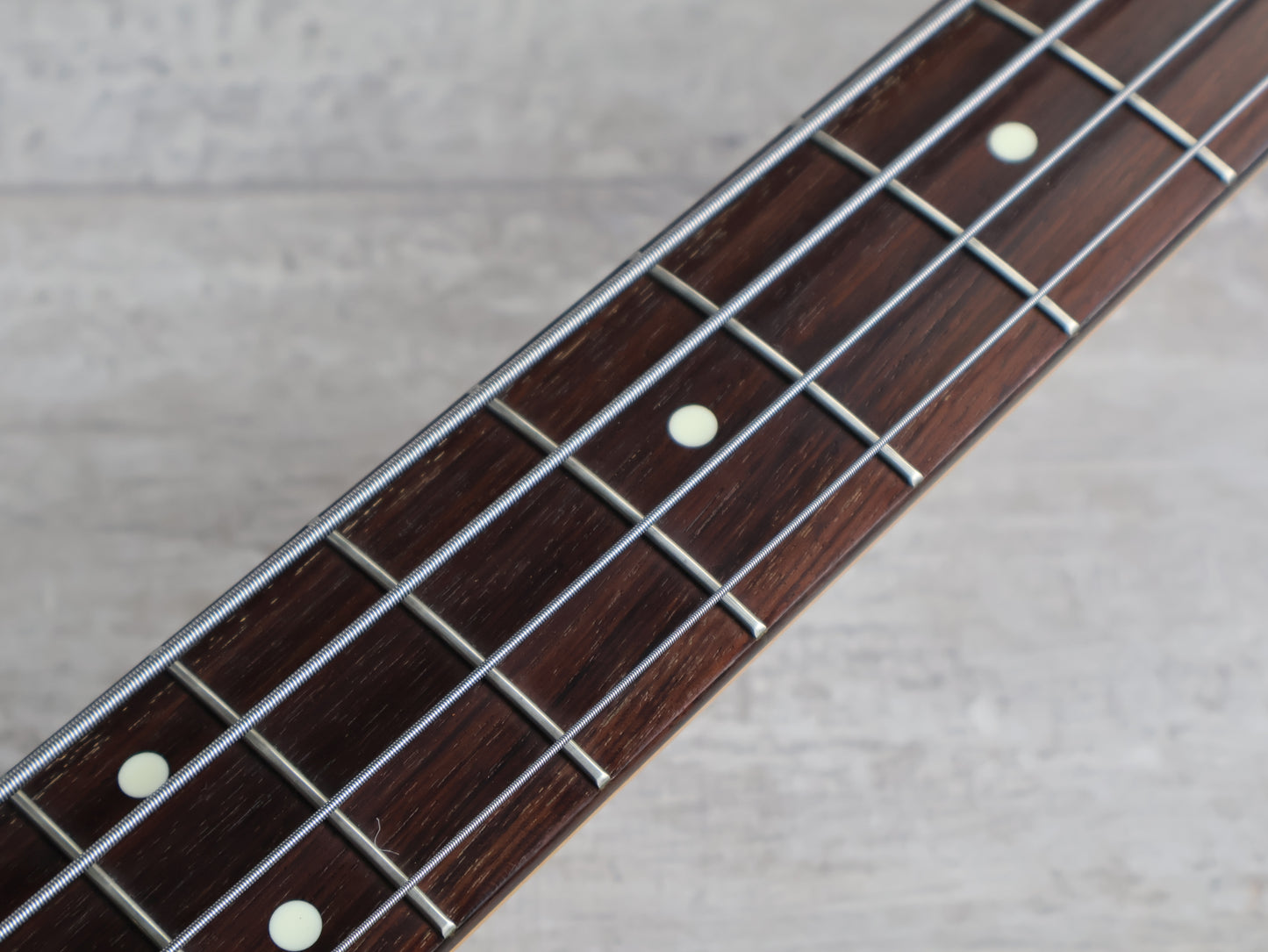 Made in Japan by Fernandes in 1990, the RPB-48 was designed as a reissue of the 1964 Fender Precision Bass. Alder body bolted to a maple neck with a rosewood fingerboard (a very vintage 6" radius with a 44mm nut width). weighs a very reasonable 3.7kg's. Looks to be all original as pictured with vintage spiral saddles and reverse machine heads for a premium feel.