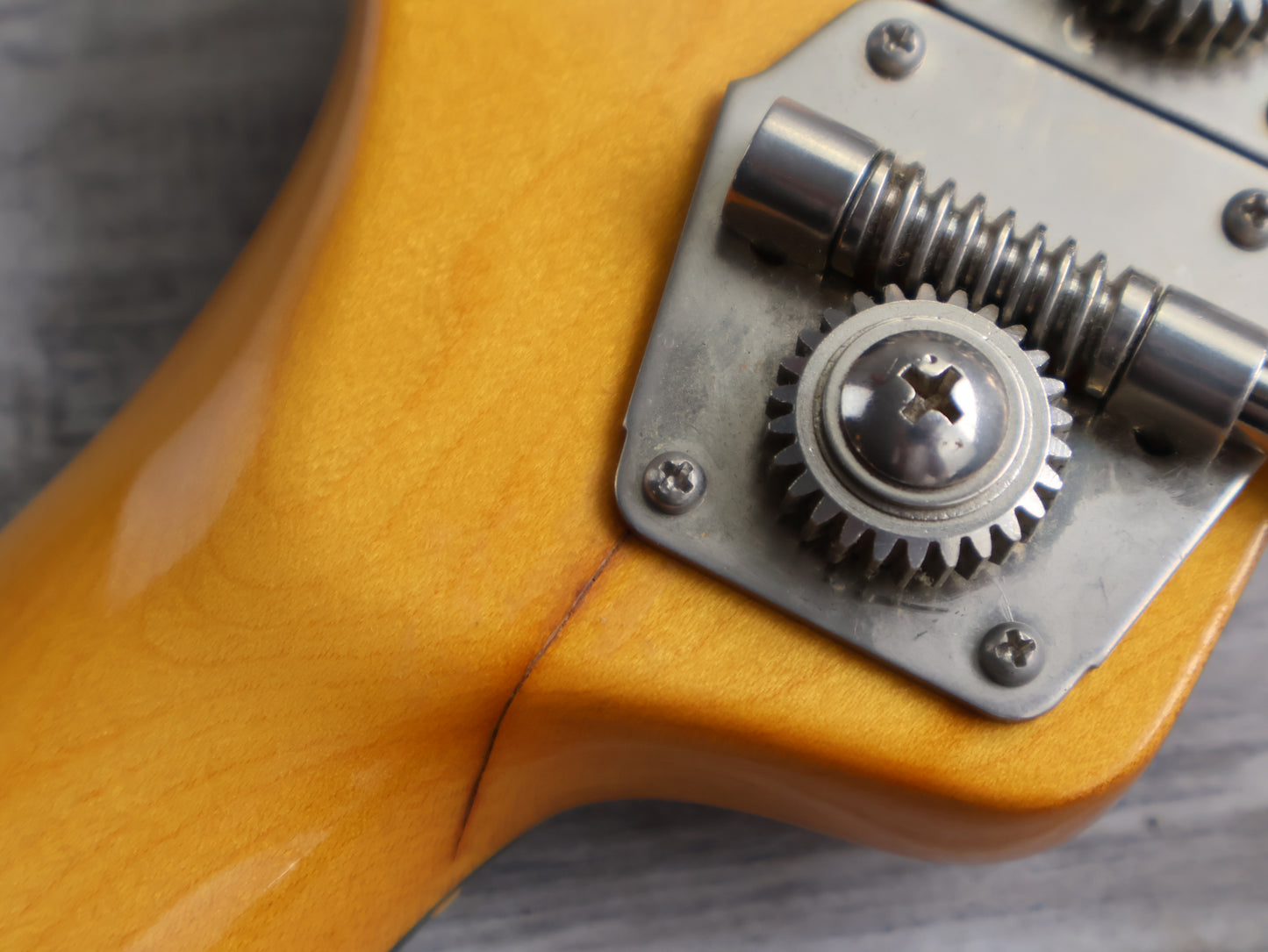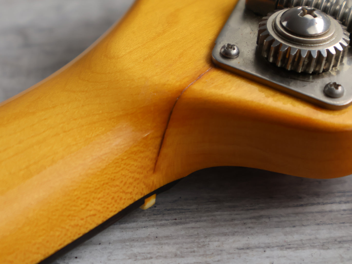 Very clean overall condition as pictured. There's a small crack along the back near the E tuner screw hole that's been professionally repaired and reglued prior to listing so it's rock solid and purely cosmetic. The frets are shiny with plenty of life left and the neck is straight with a fully functional truss rod.