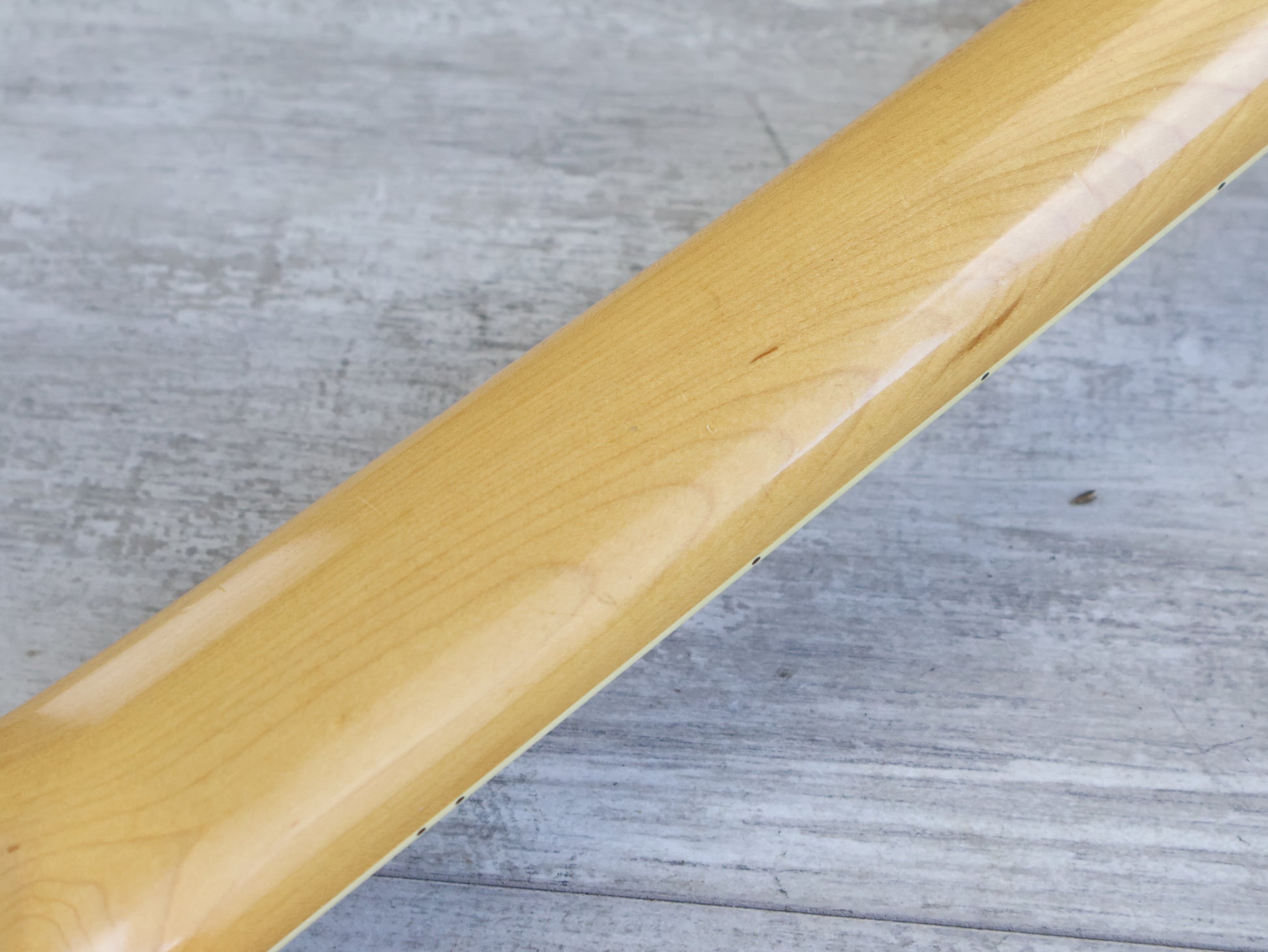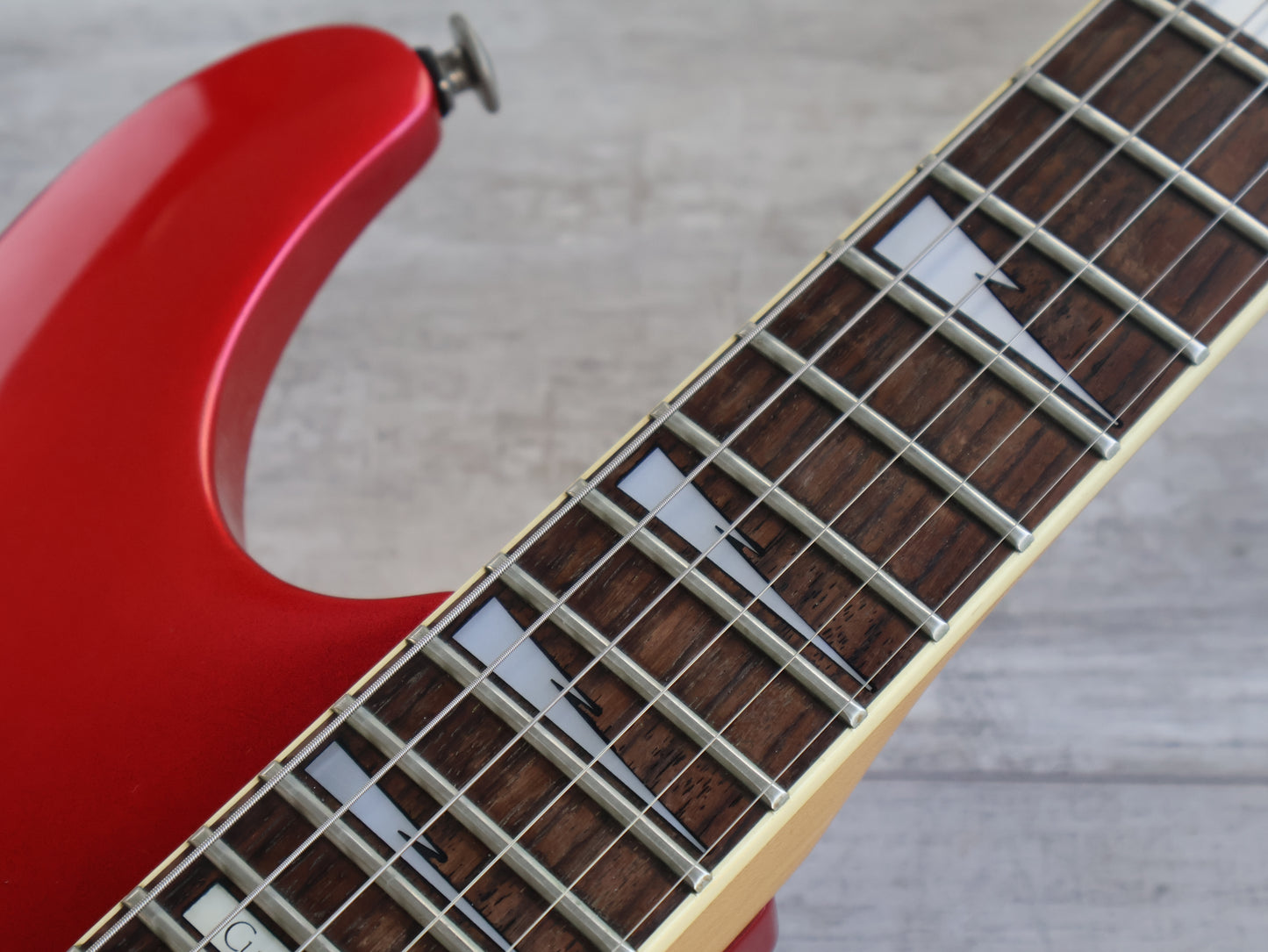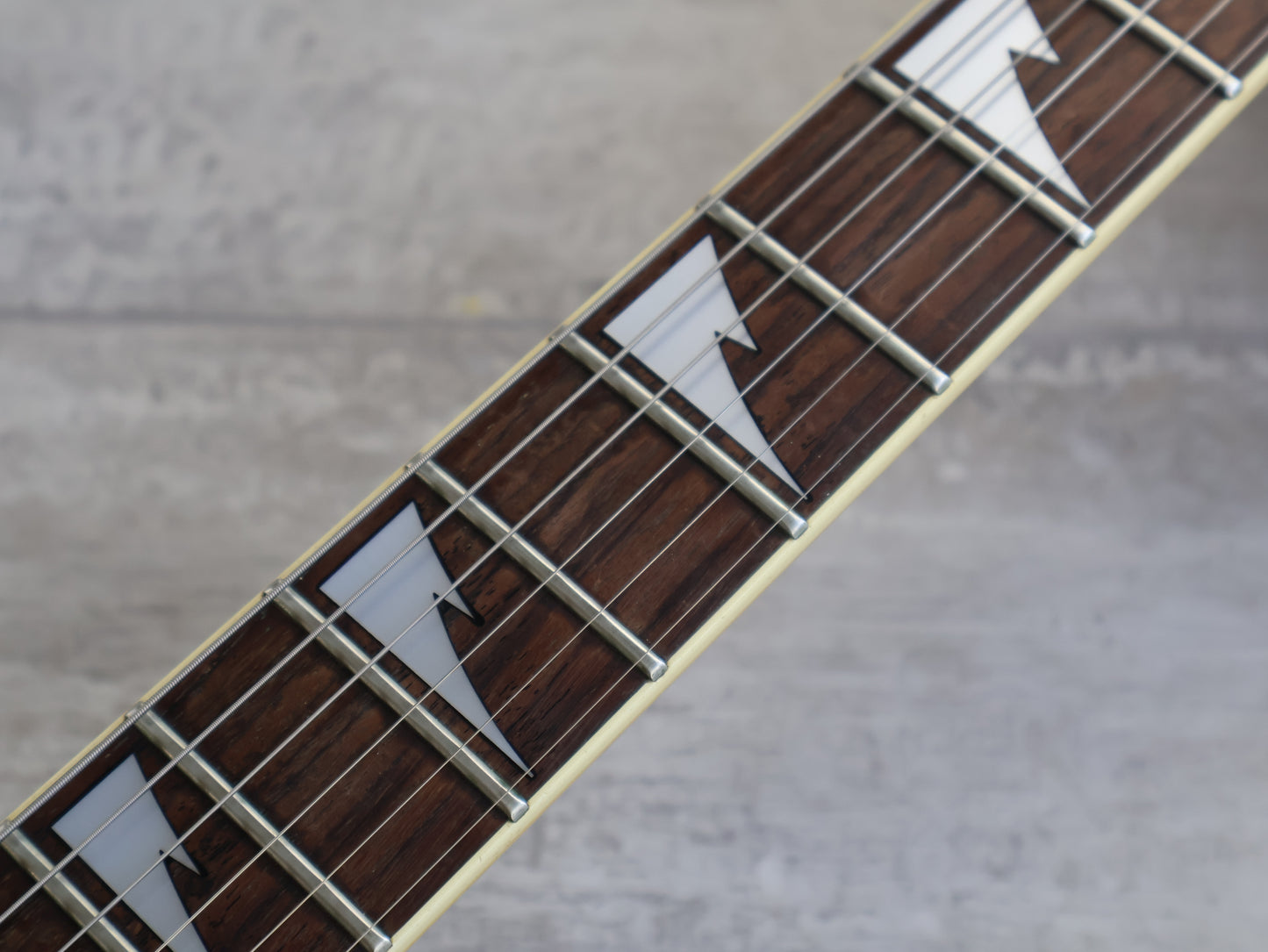 This one appears all original except for the previously mentioned humbucker. Given a basic setup and service prior to listing including a fretboard oil, fret polish and electronics flush. The frets show light wear but play smoothly with minimal pitting, the neck is straight and the truss works as it should.