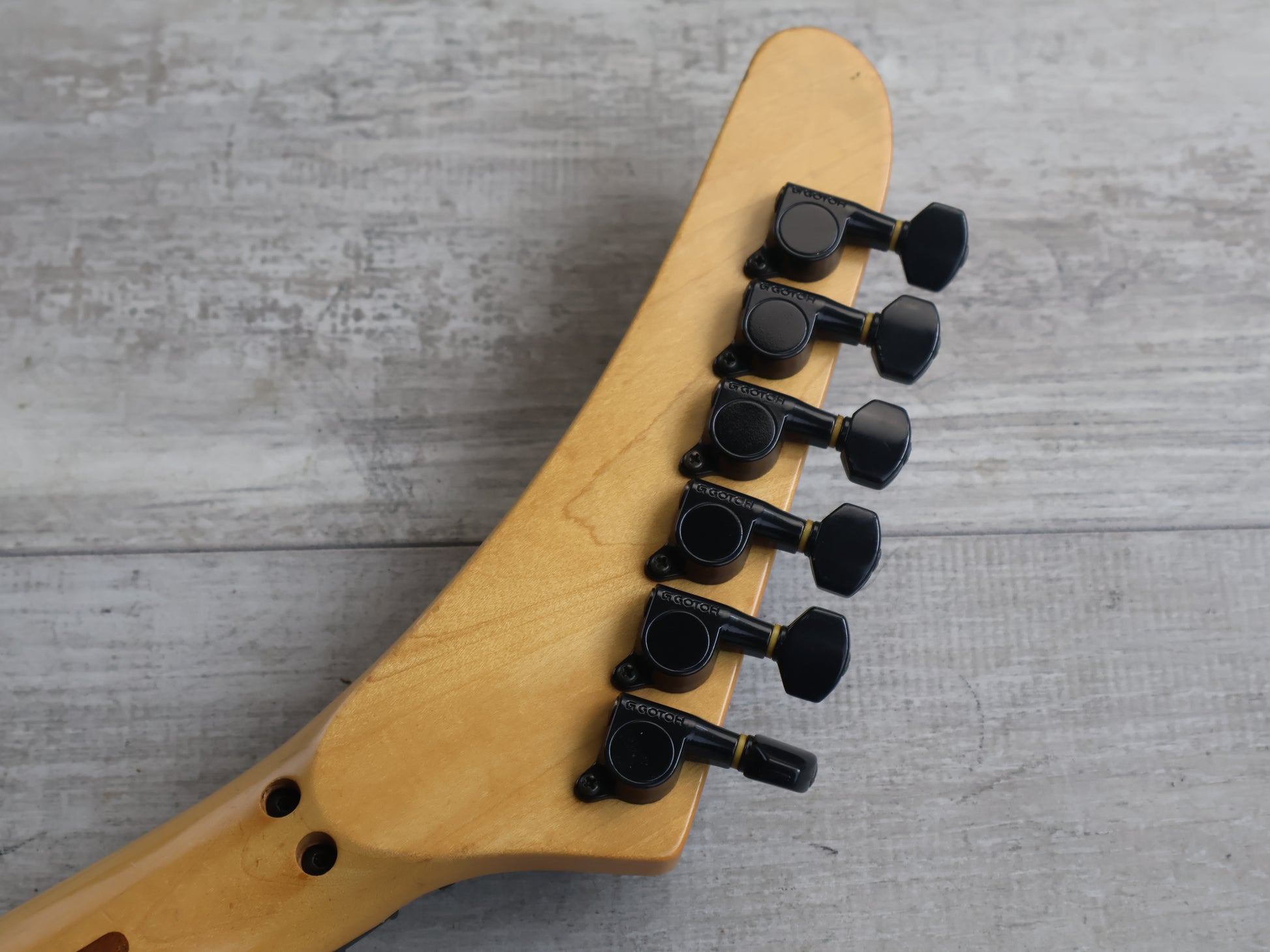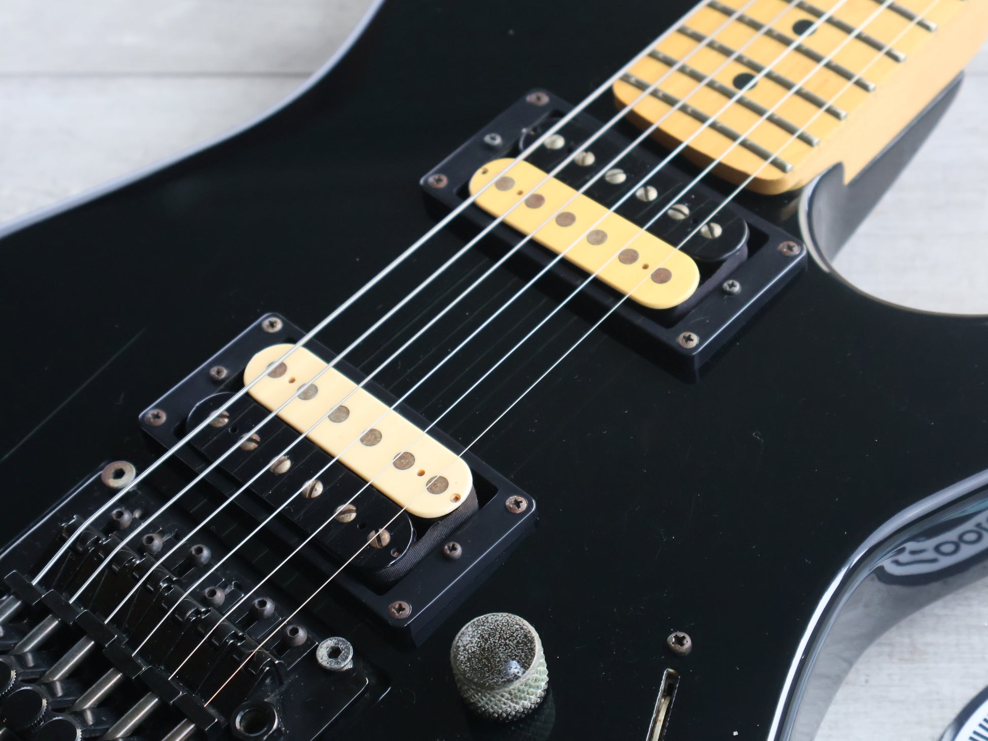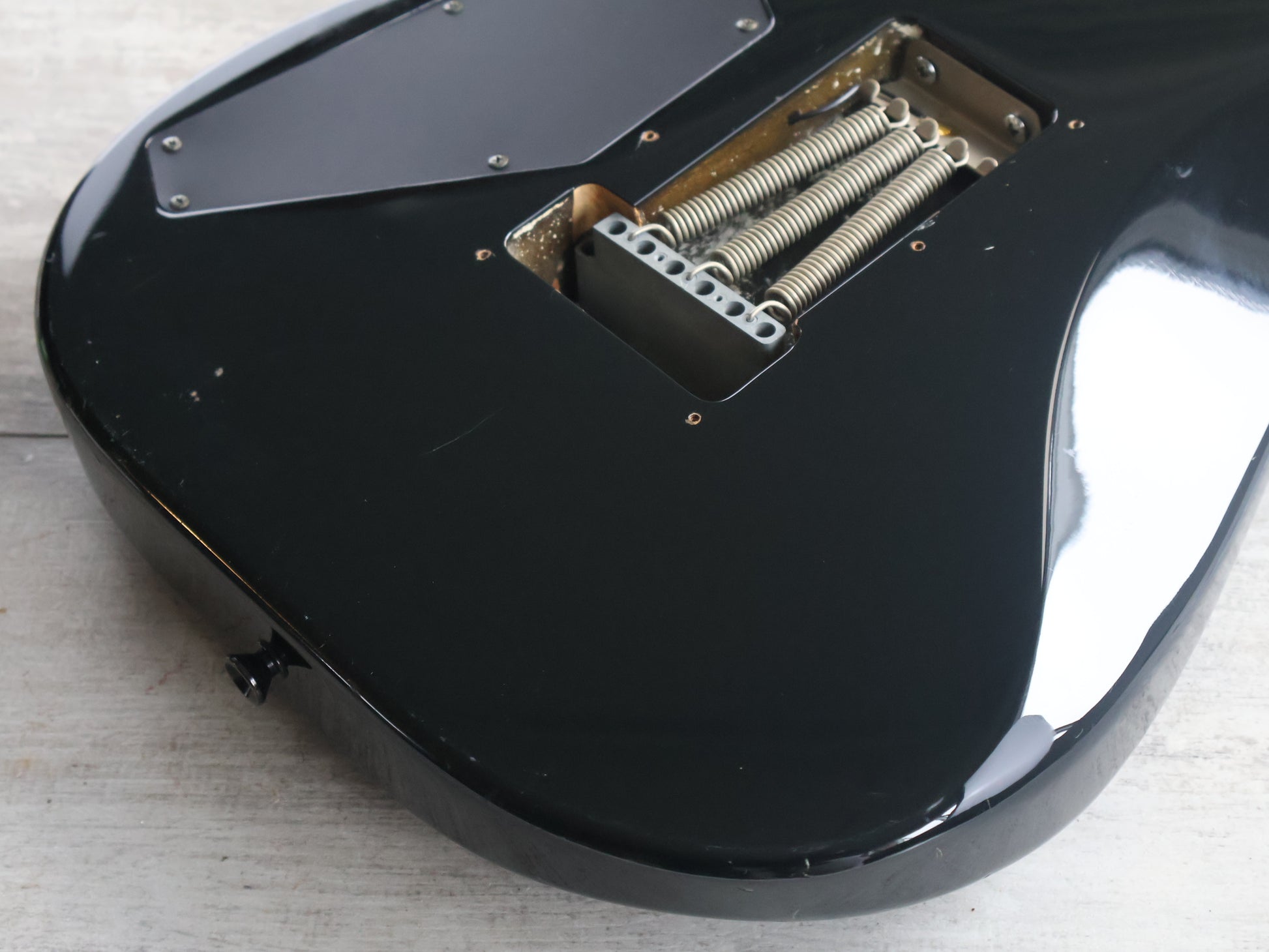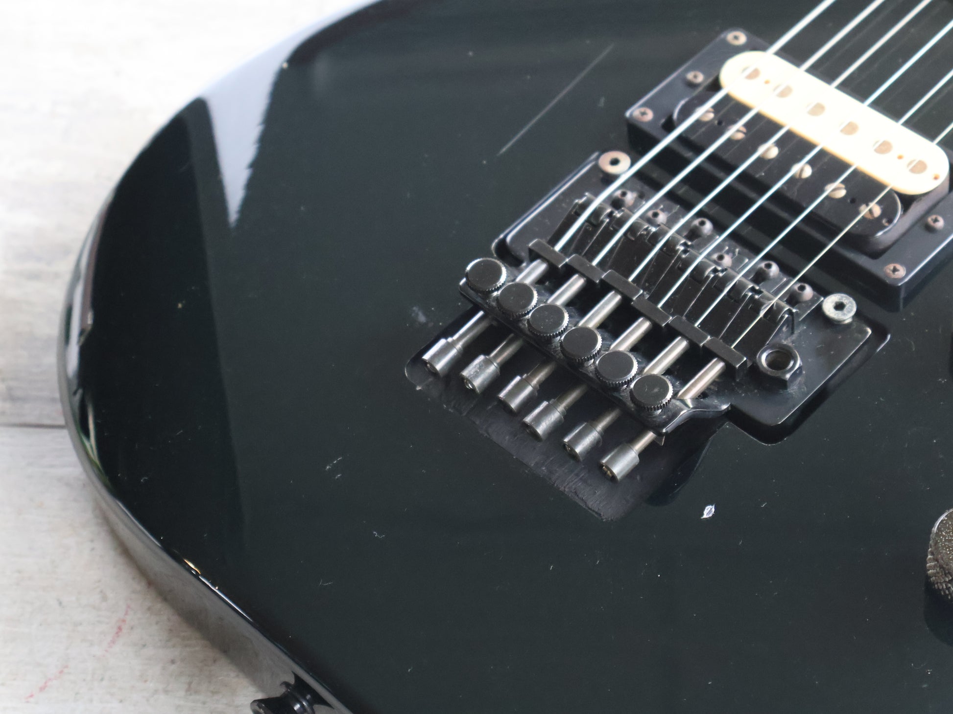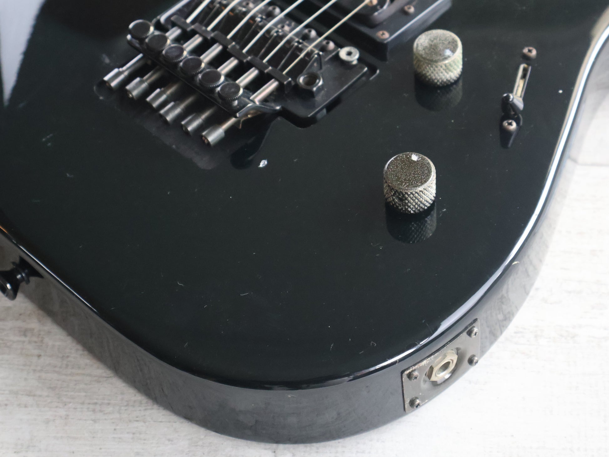 Made by ESP in Japan after Kramers closure in 1990, the MK-IIB was apparently build using NOS parts. Solid poplar body bolted to a slim 22 fret maple neck (628mm scale length, 40mm nut width), it weighs just over 3kg's.