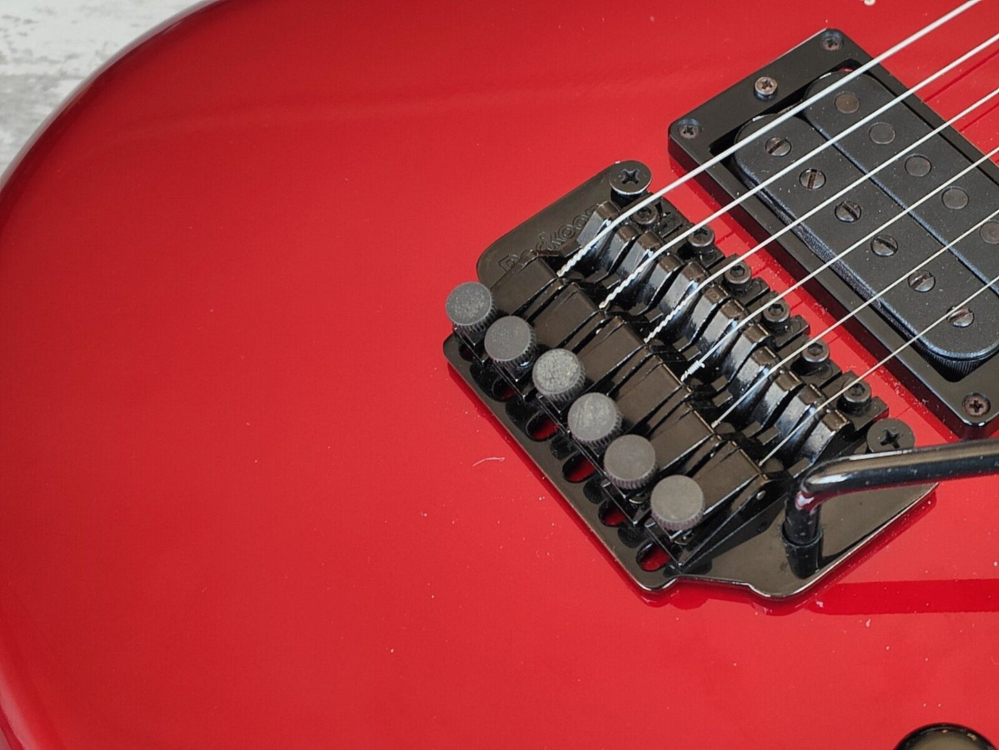 The TG-60 was part of their "Super Material" line of guitars and is built with a soft maple body bolted to a hard maple neck with a 24 fret rosewood fingerboard (628mm scale length), it weighs 3.4kg's. Factory loaded with a Schaller Golden 50 humbucker and a Rockoon roller locking tremolo for a smooth trem experience, it also features a fully functional factory overdrive/distortion circuit that gives a very musical punch when switched on.