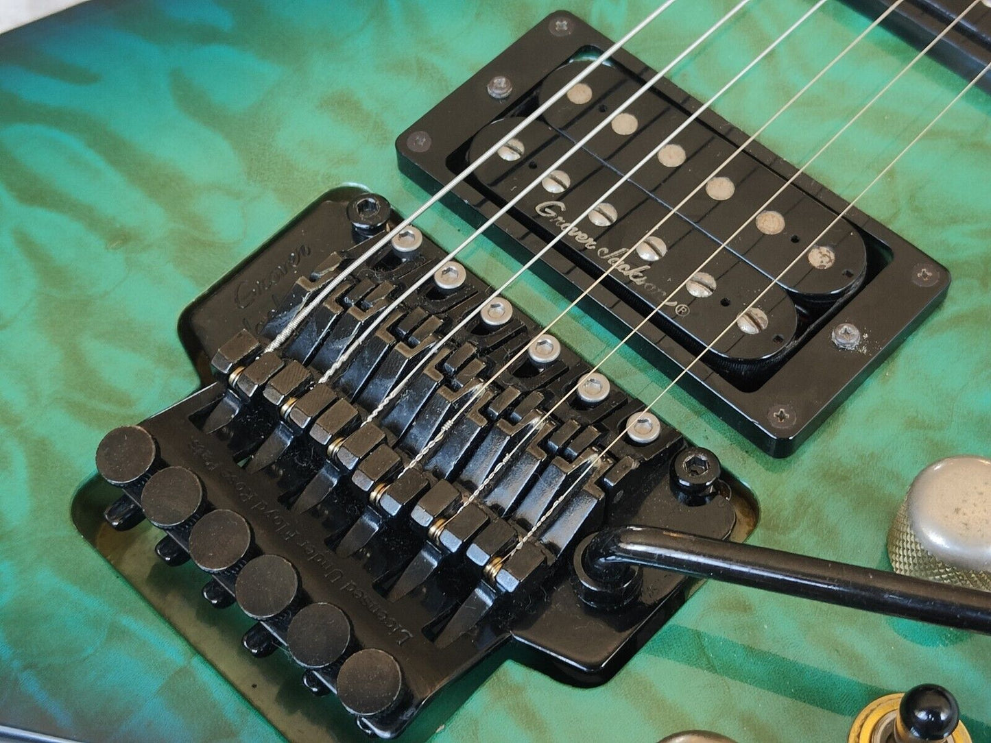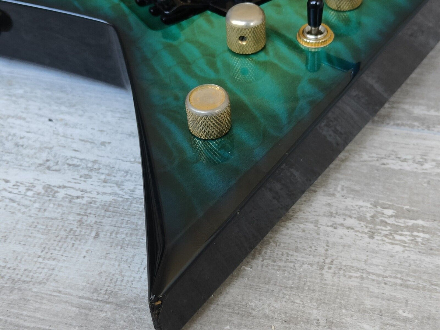 1990’s Grover Jackson Japan Rhoads Flying V Electric Guitar (Quilt Turqoise)