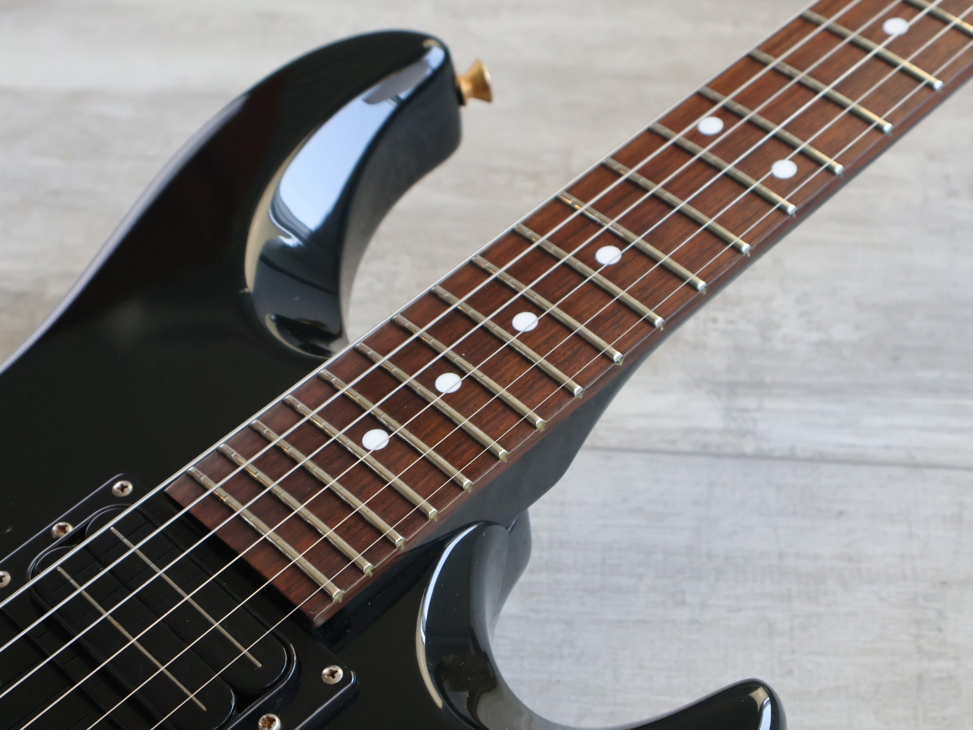 One of two artist models designed with Miki "SUN-GO" Igarashi of the band "SHOW-YA". Compact alder body with Wolfgang vibes, 24 fret rosewood fingerboard on a painted maple neck that has a very slight V profile, weighs 3.5kg's. 628mm scale length with a Stratocaster style tremolo system, it's loaded with original Bill Lawrence L-500 rail humbuckers (independent volume controls and a master tone knob).