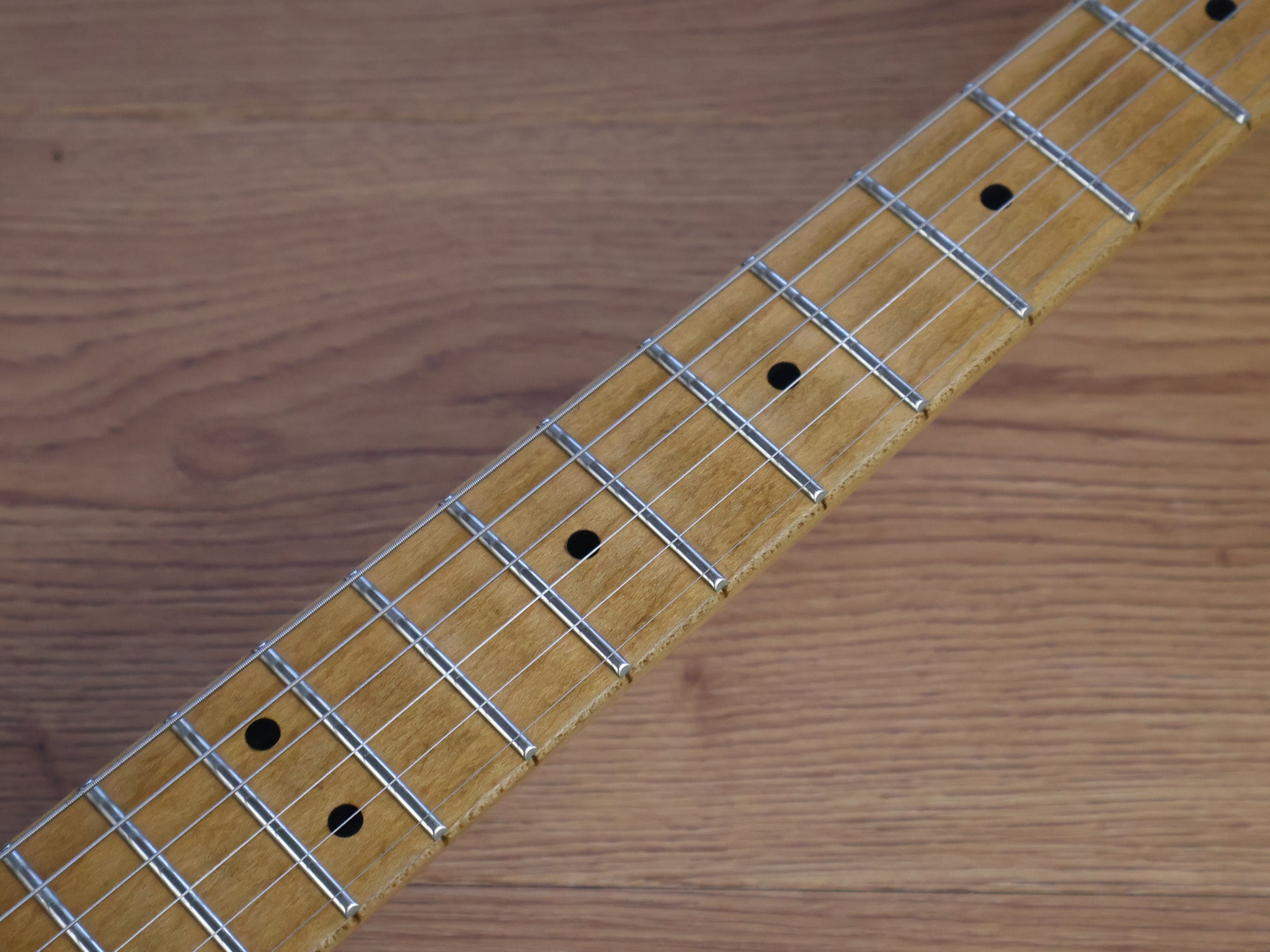 The Charvel MyG series were sold in the Japanese market as an entry level offering from Jackson/Charvel in the 90's. This is a no-frills Dinky model with plenty of playability. HSS pickup configuration on a basswood body with a maple neck and 22 fret maple fingerboard (648mm scale length), it weighs just under 3.3kg's.