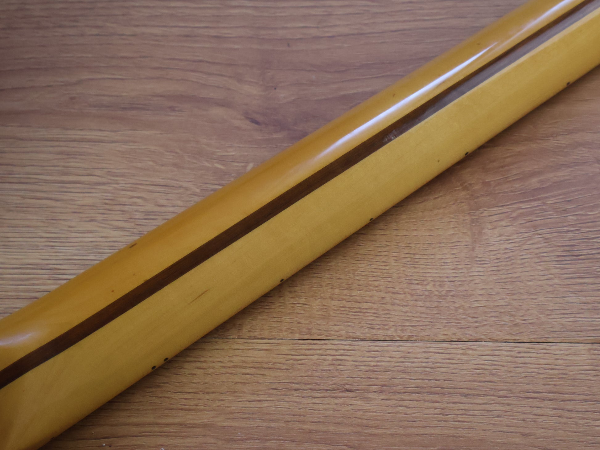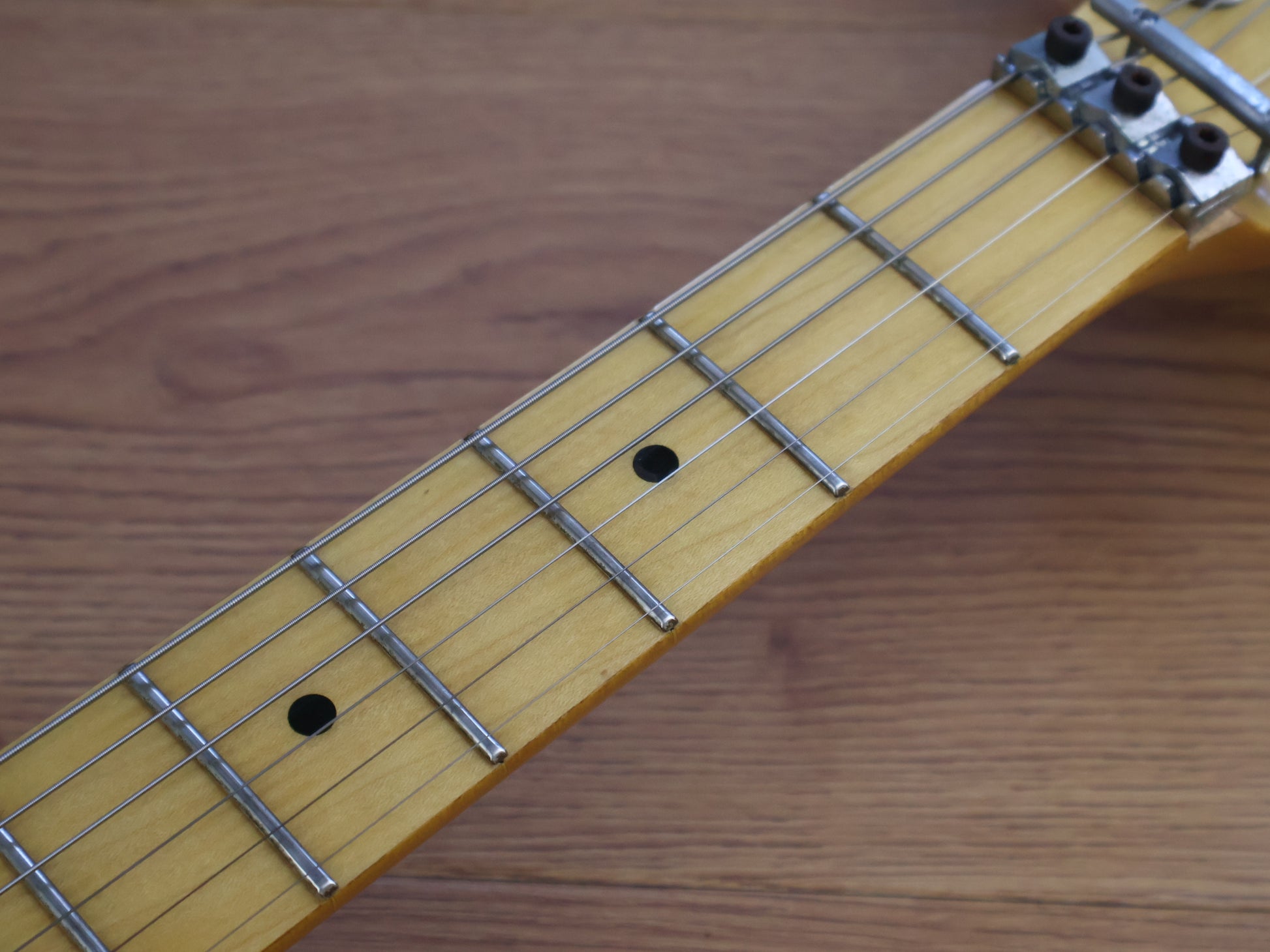 Given a full professional setup and service prior to listing, good overall condition for it's age with a few bumps and bruises but no breaks or repairs. The neck is straight and the truss adjusts freely, the frets are reasonably worn but are still shiny and smooth and play well as they sit.