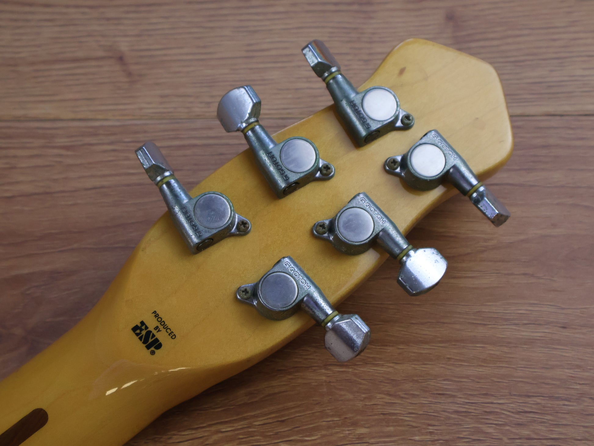 Alder body with cracked mirror segments on the top bolted to a hard maple neck (soft V profile) with a 22 fret maple fingerboard, it weighs 3.7kg's. Loaded with the original Japanese humbuckers, Floyd Rose tremolo and Gotoh tuners with an aftermarket killswitch installed.