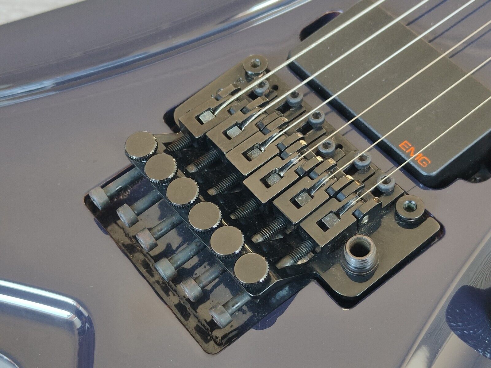 Finished in a deep glossy purple finish, it's built with a carved "Flying V" body (alder) with a bolt-on maple neck/rosewood fingerboard. 648mm scale length with 22 frets, it features with a genuine Floyd Rose and Gotoh tuners. Loaded with a pair of EMG 89/81 humbuckers (three-way switch with two volume knobs), it's a fantastic sounding guitar for heavier genres. Weighs just under 3.5kg's.