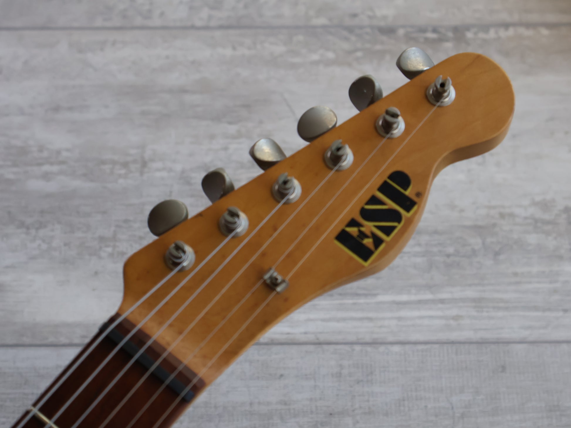Handmade in Japan by ESP's luthiers in the early 1990's, this is a custom order version of the TEV-53 Telecaster with a 22 fret rosewood fingerboard instead of the traditional '50's style maple one-piece neck. Solid ash body with a satin C profile maple neck, it weighs 3.9kg's. Loaded with ESP single coils (with cloth wiring), CTS pots, an "old style" six-saddle ashtray bridge and ESP Deluxe vintage tuners, it appears to be all original.