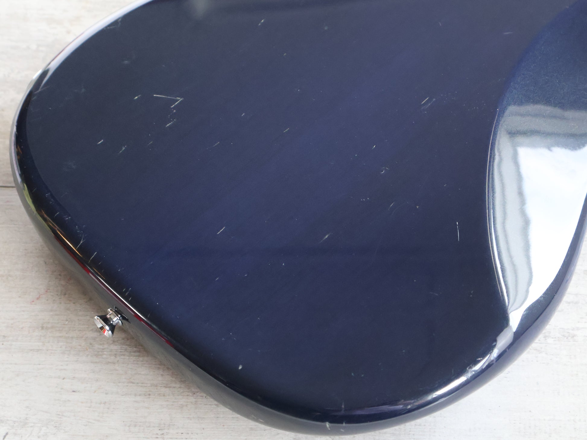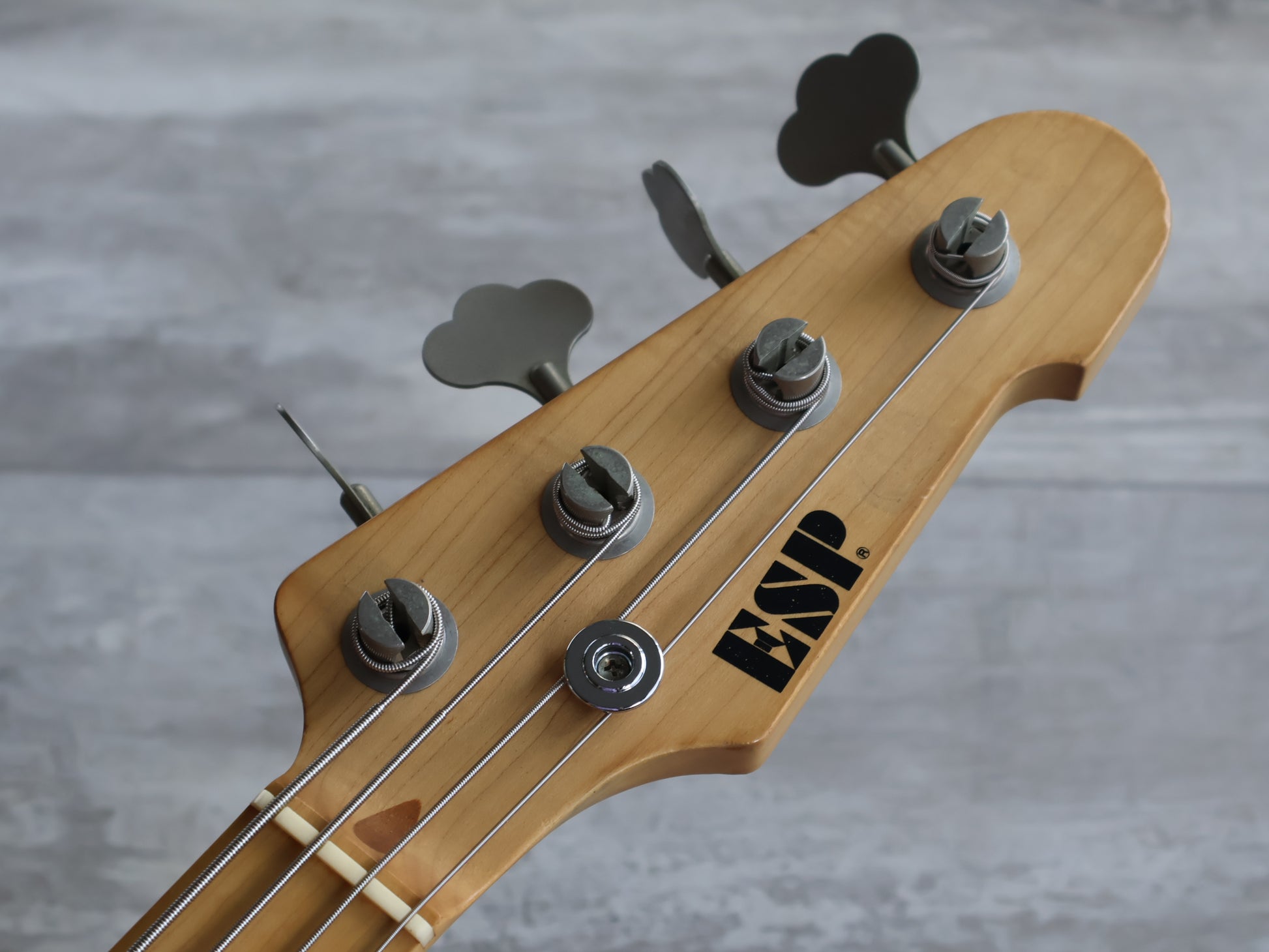 Made in Japan by the ESP factory in the 1990's as what looks to be a custom order "Vintage Four". Solid P-style body with a metallic blue finish bolted to a 21 fret maple neck, it weighs 3.8kg's. Loaded with a pair of high-output Seymour Duncan Quarter Pound PJ pickups and an ESP branded bridge, it looks to be all original except for the removed pickguard.