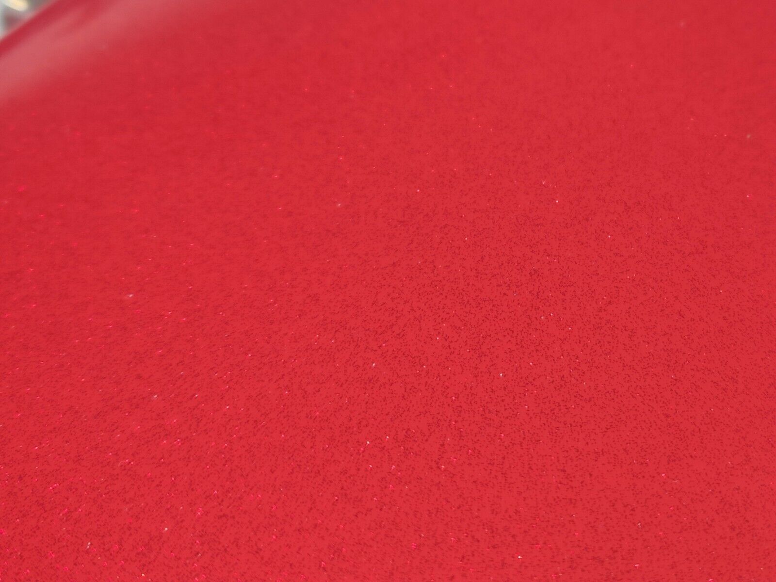 Sourced by us in very gross condition with a poor refinish attempt on the body and some sanding to the neck, had it fully disassembled and rebuilt from the ground up. We had it refinished in a sparkle "Fiesta Red" with a metallic flake that pops in the sunlight and had the neck sanded back to a satin smooth finish that feels uniform in the hand.